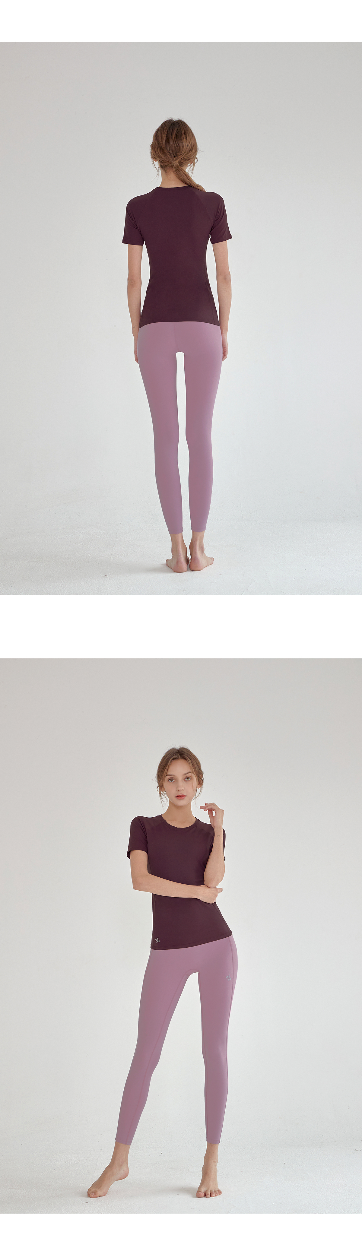 쇄골 라인을 따라 깔끔하게 떨어지는 라운드넥 디자인에 래글런 어깨 라인으로 팔을 들어 올리는 동작이나 액티브한 활동 시에도 편안하게 움직일 수 있도록 도와줘요.
