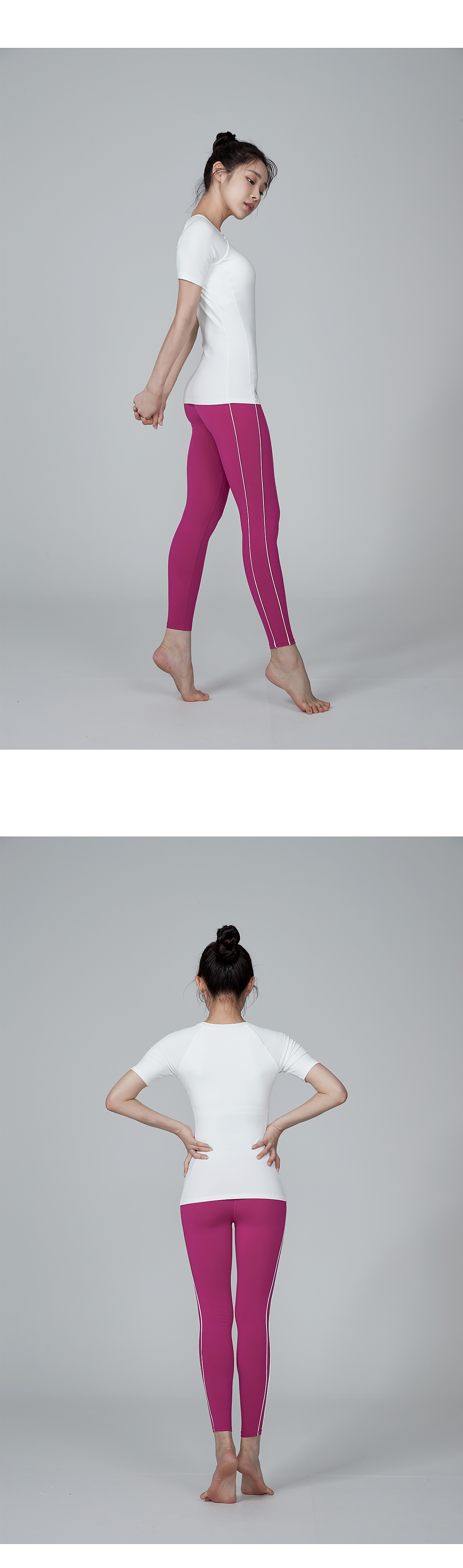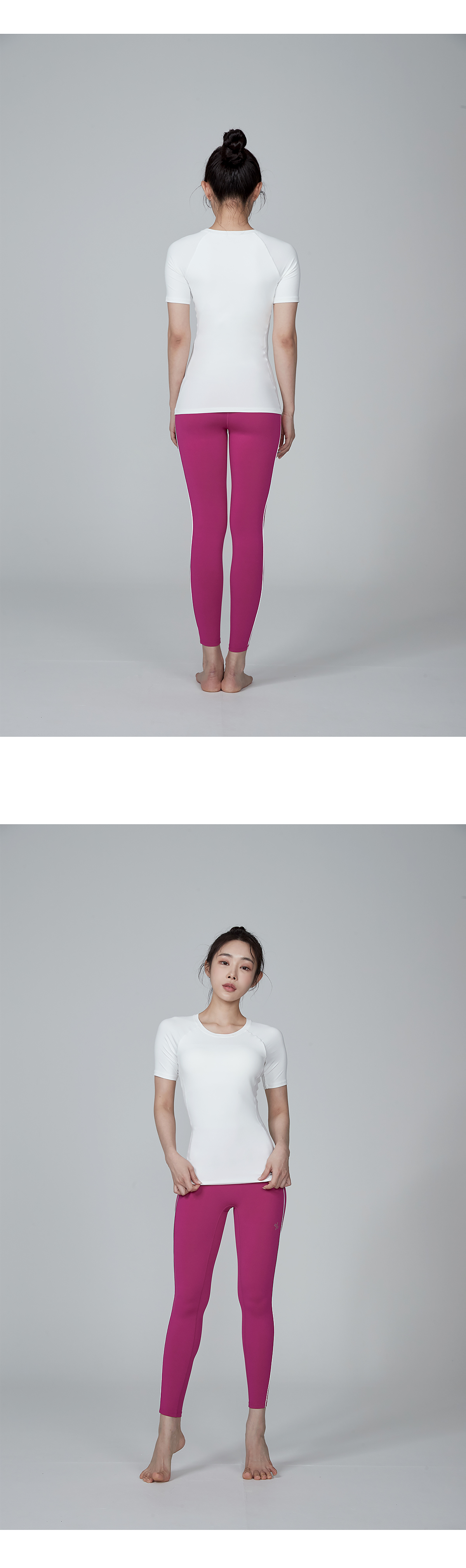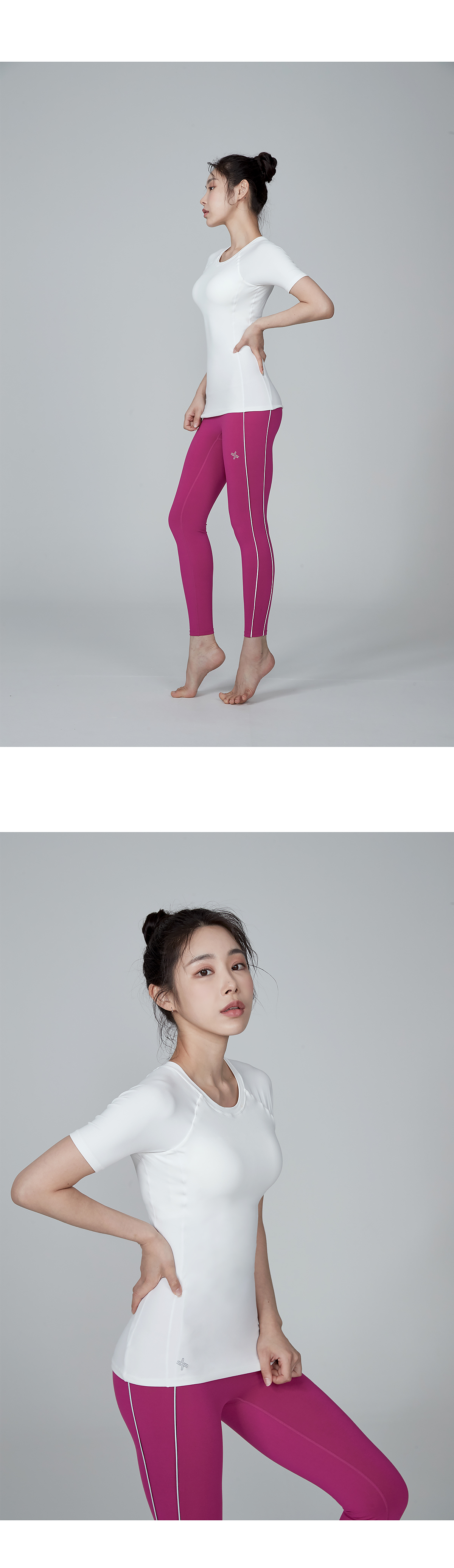골반까지 오는 기장으로 상체를 탄탄하게 잡아주고 다양한 퍼포먼스 활동에도 핏이 변형이 없어요.