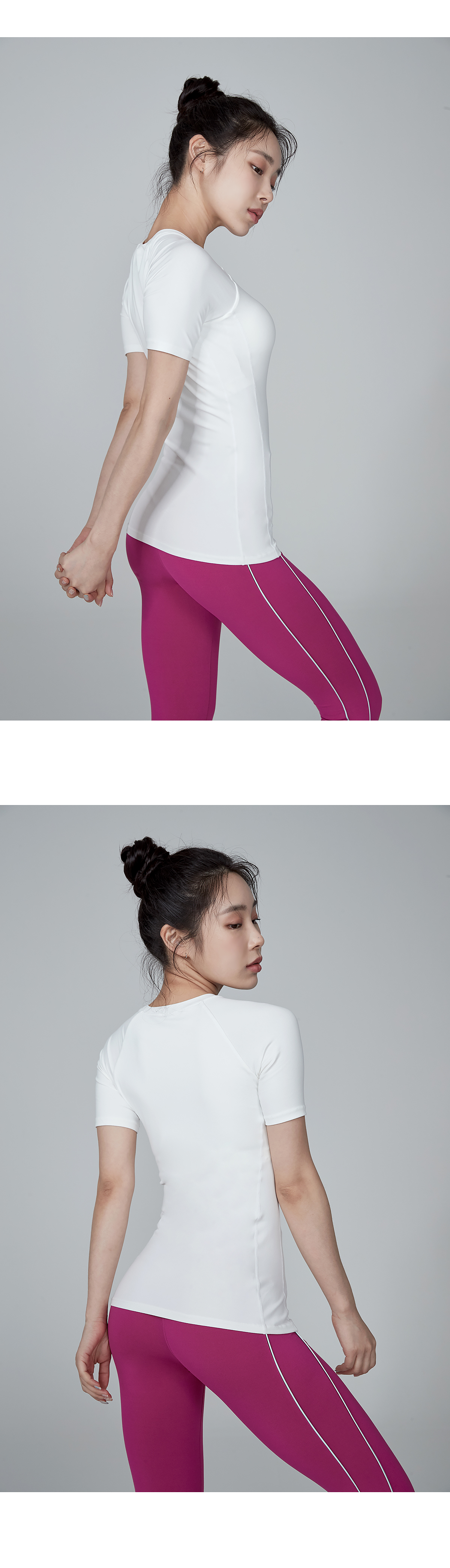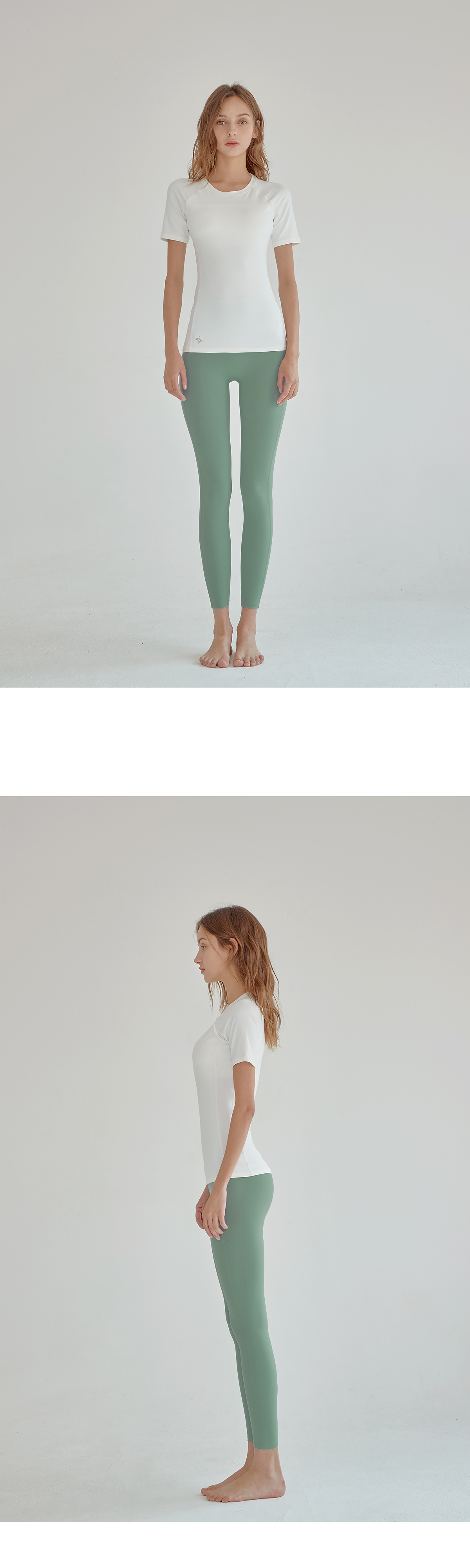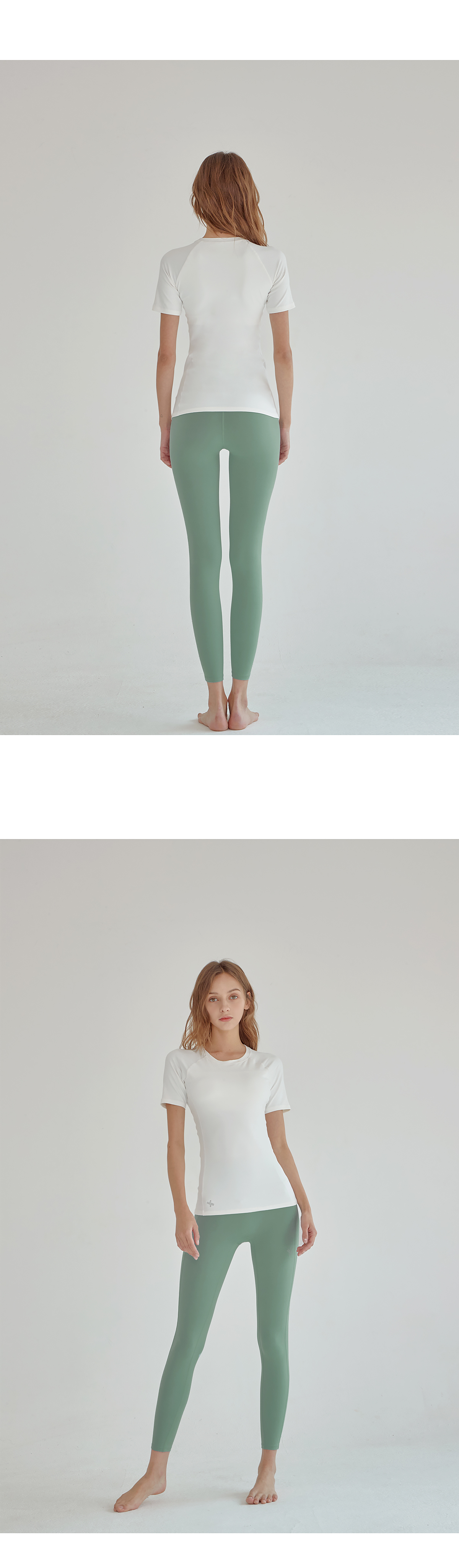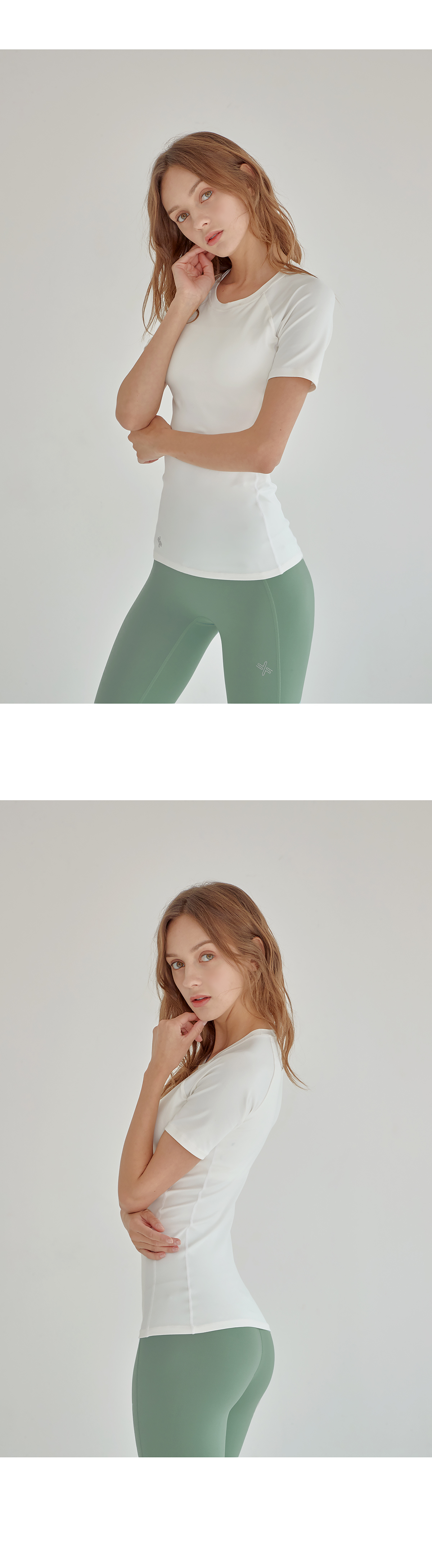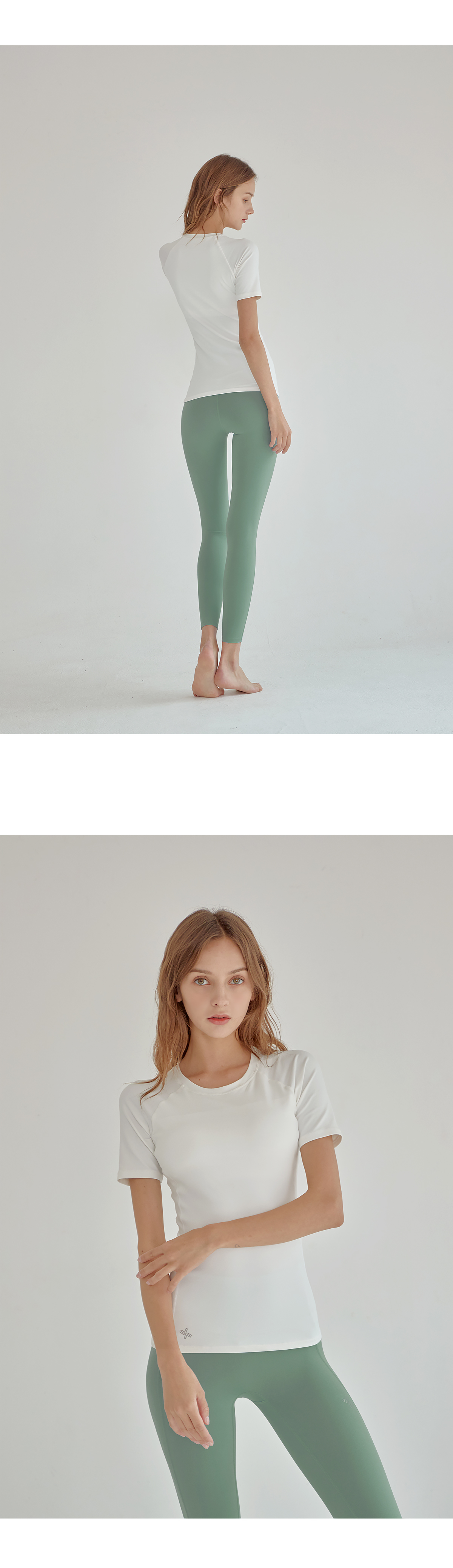 쇄골 라인을 따라 깔끔하게 떨어지는 라운드넥 디자인에 래글런 어깨 라인으로 팔을 들어 올리는 동작이나 액티브한 활동 시에도 편안하게 움직일 수 있도록 도와줘요.