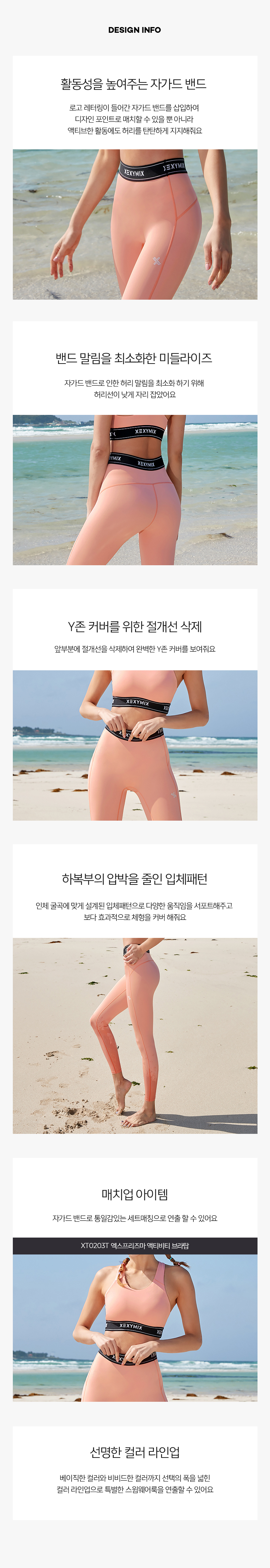 로고 레터링 자가드 밴드를 삽입하여 스포티한 무드를 완성해주는 워터 레깅스예요 젝시믹스의 기술력으로 워터 스포츠에 가장 최적화된 원단, X-prizma™를 개발했어요 효성의 프리즈마 원단과 크레오라 액티핏 스판사를 양면으로 편직한 원단으로 보다 선명한 색 구현력과 강화된 탄성력을 보여줘요 염소와 바닷물과 땀에 강한 원단에 UV차단 기능까지 더해져 야외 활동과 워터 스포츠에 탁월해요 로고 레터링이 들어간 자가드 밴드를 삽입하여 디자인 포인트로 매치할 수 있을 뿐 아니라 액티브한 활동에도 허리를 탄탄하게 서포트 해줘요 또 이 자가드 밴드로 인한 허리 말림을 최소화하기 위해 허리선을 미들라이즈로 잡아 더욱 편안하게 입을 수 있어요 앞부분에 절개선을 삭제하여 완벽한 Y존 커버를 보여주고, 하복부의 압박을 줄인 입체패턴과 형태복원력이 뛰어난 원단이 다양한 움직임에도 몸을 효과적으로 지지해줘요 XT0203T 레깅스를 세트업 매치 시 공통으로 들어간 자가드 밴드가 통일감있고 감각적인 스타일을 연출해줘요 야외 활동에 최적화된 원단으로 캐주얼한 컬러부터 비비드한 컬러까지 다양하게 만나 볼 수 있는 젝시믹스 X-prizma™ 라인과 특별한 여름을 만들어보세요! 상품출시일 : 2020.05.29