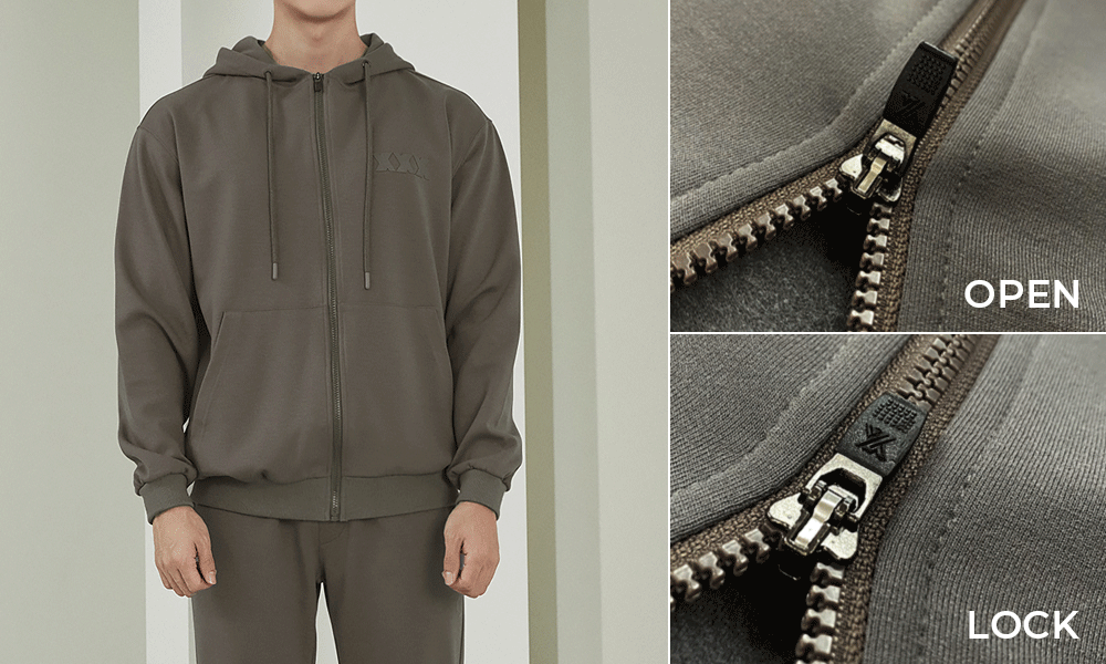 퍼포먼스 시 지퍼 고리의 방향에 따라 열리고 잠기는 오토락 지퍼를 적용하여 움직임이나 공기의 저항으로 원치않게 지퍼가 열리는 현상을 방지해 줘요.