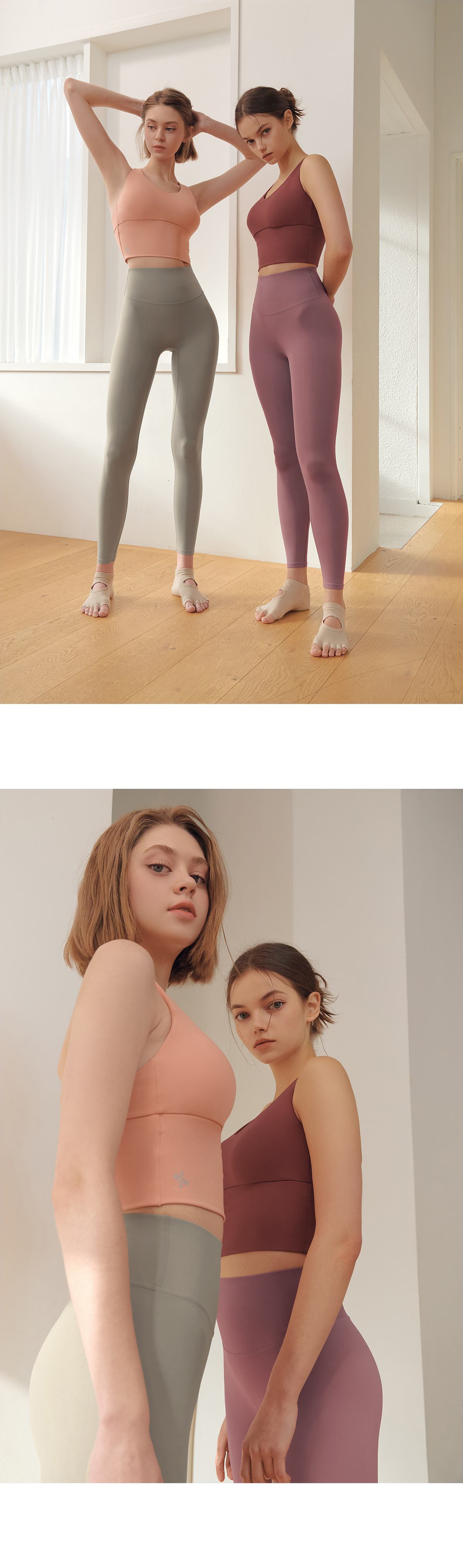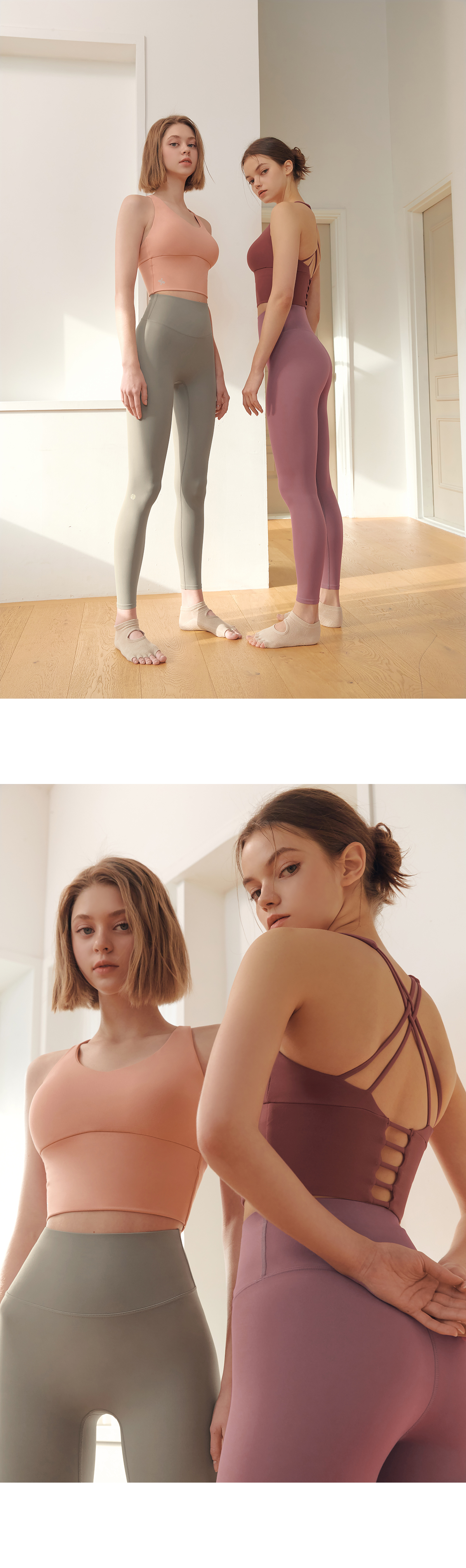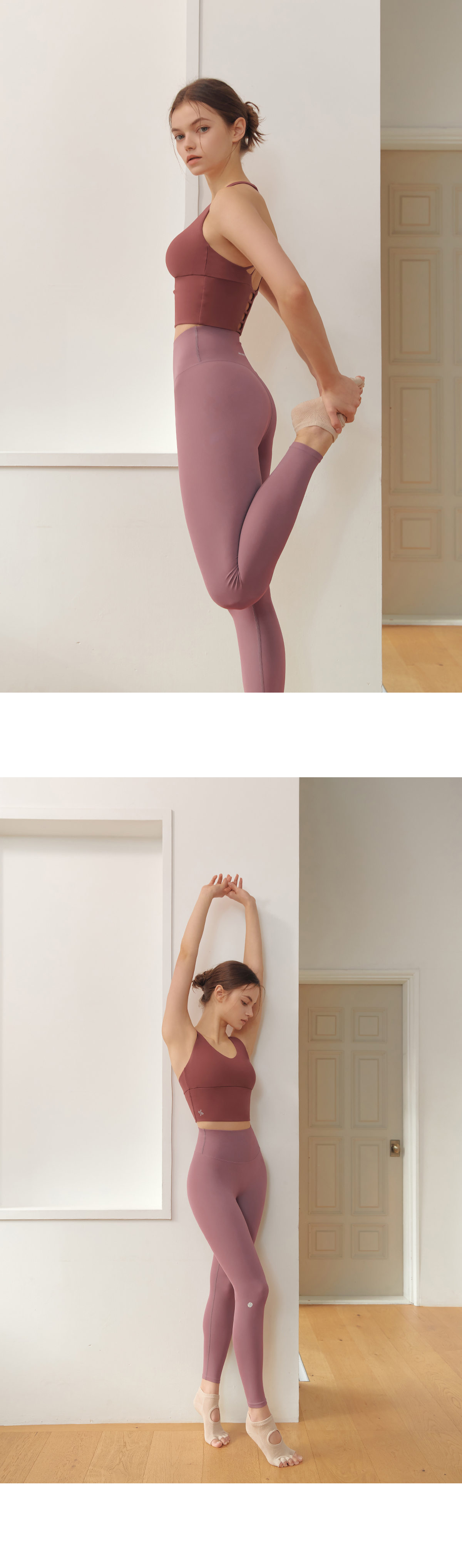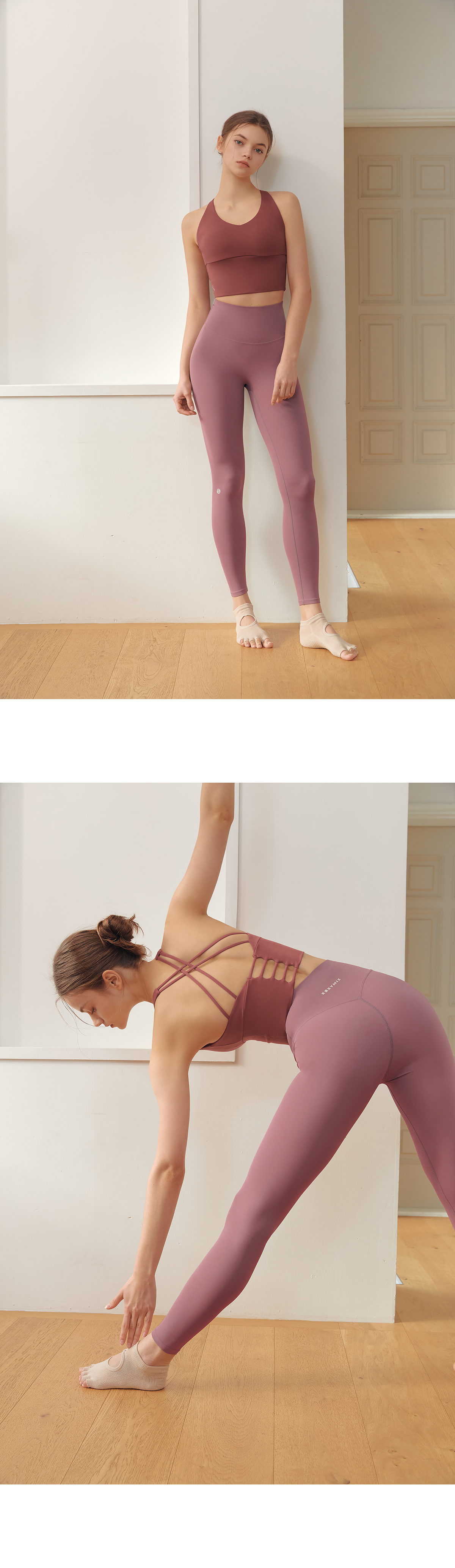 코튼과 같은 부드러운 촉감의 고급 요가복 소재인 나일론 스판을 활용하여 땀을 빨리 흡수하고 건조해 주어 활동적인 운동 시에도 쾌적하게 착용할 수 있어요.