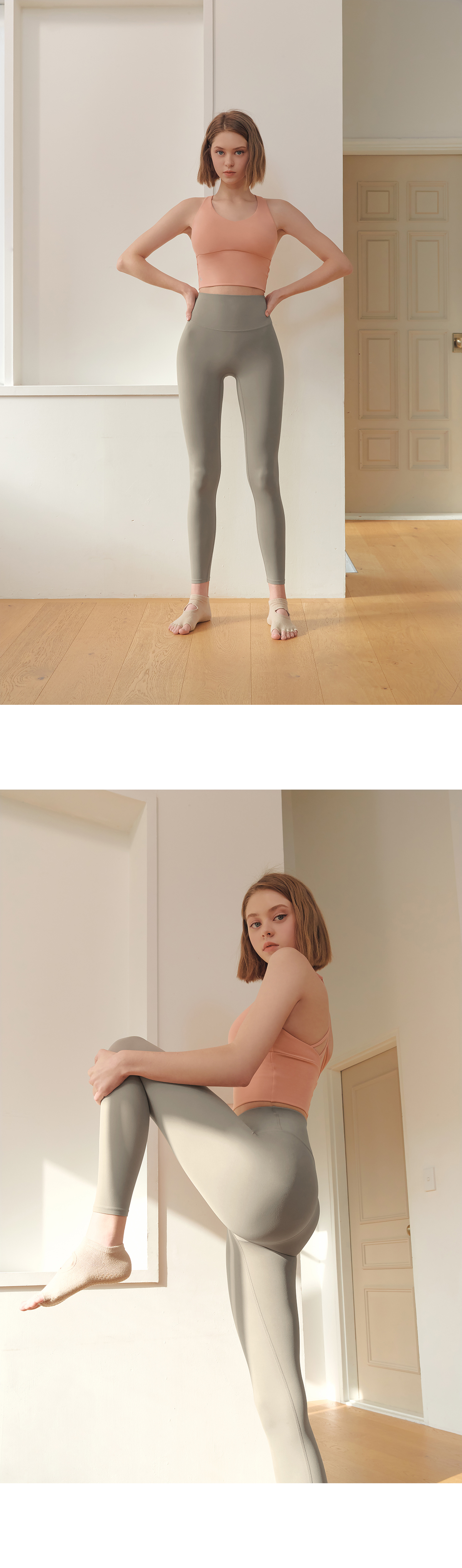 코튼과 같은 부드러운 촉감의 고급 요가복 소재인 나일론 스판을 활용하여 땀을 빨리 흡수하고 건조해 주어 활동적인 운동 시에도 쾌적하게 착용할 수 있어요.
