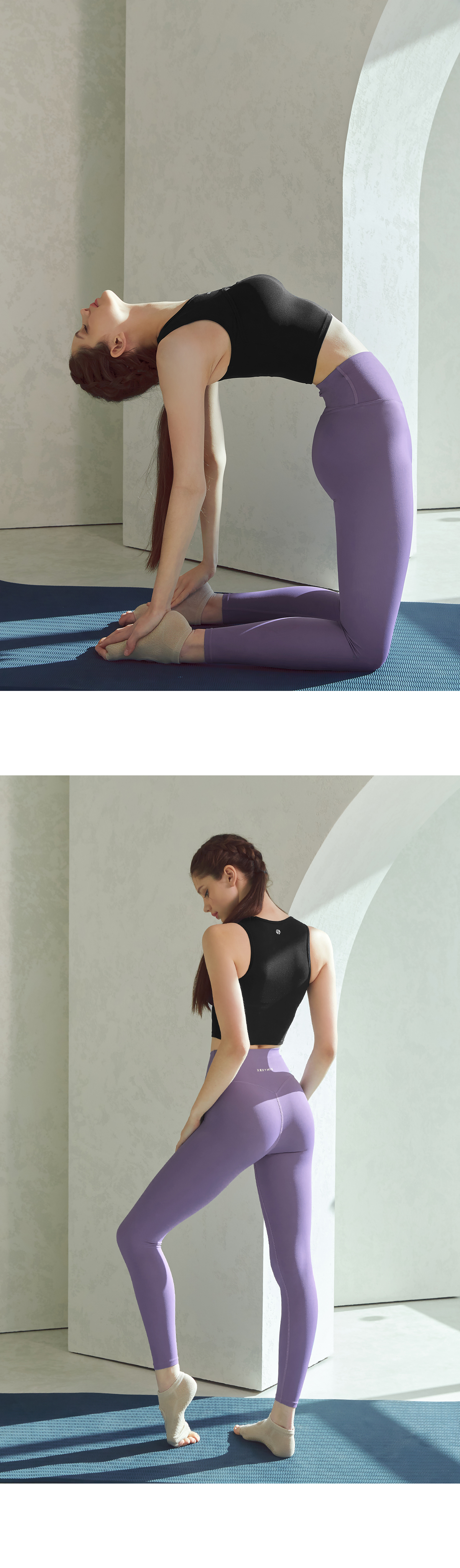 양면 직조하여 내구성이 강하고 움직임이 큰 퍼포먼스 시에도 완전히 밀착되어 몸을 안정적으로 지지해줘요.
