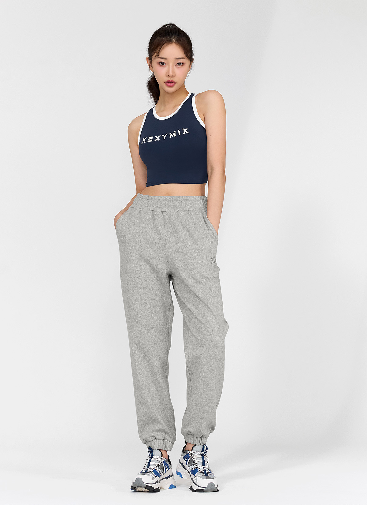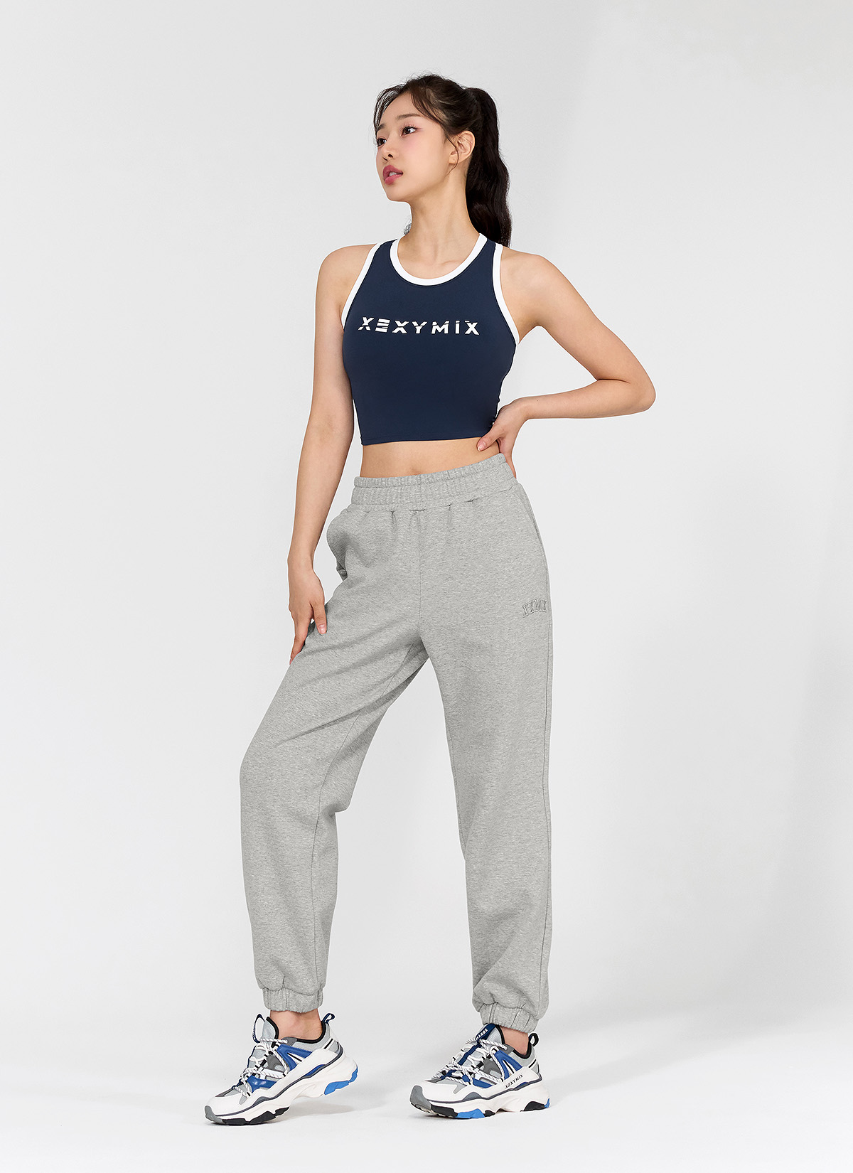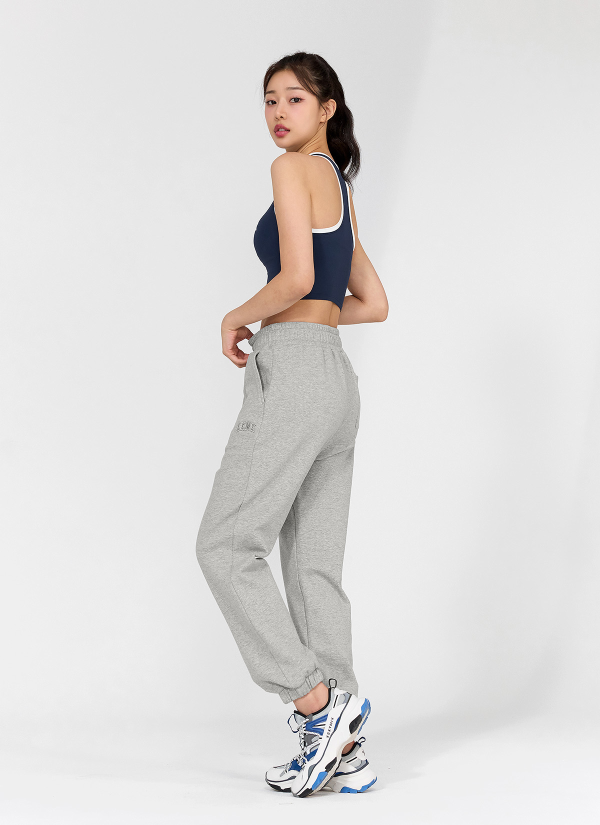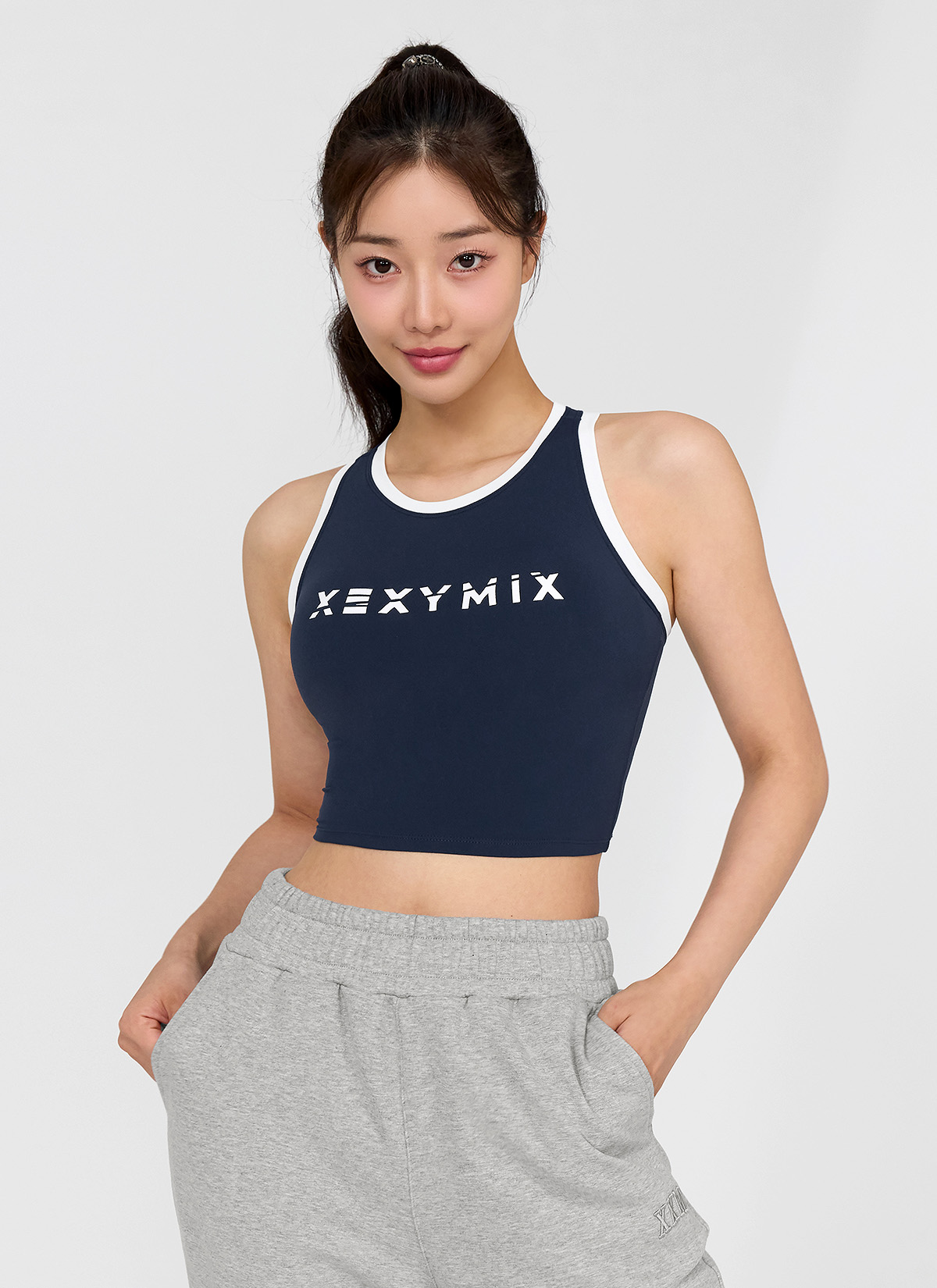 패드 내장 브라탑 하나로 운동복 고민 끝! 피오니네이비