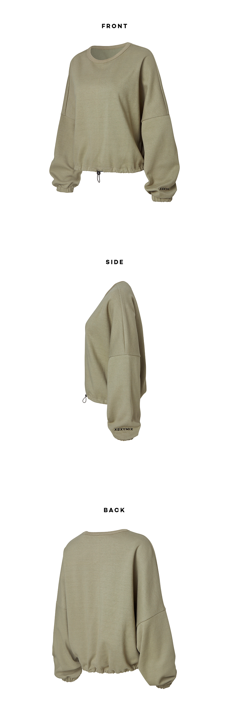 어깨선을 여유 있게 디자인한 드롭 숄더 스타일로 루즈한 핏이 돋보이는 밑단 스트링 맨투맨이에요.