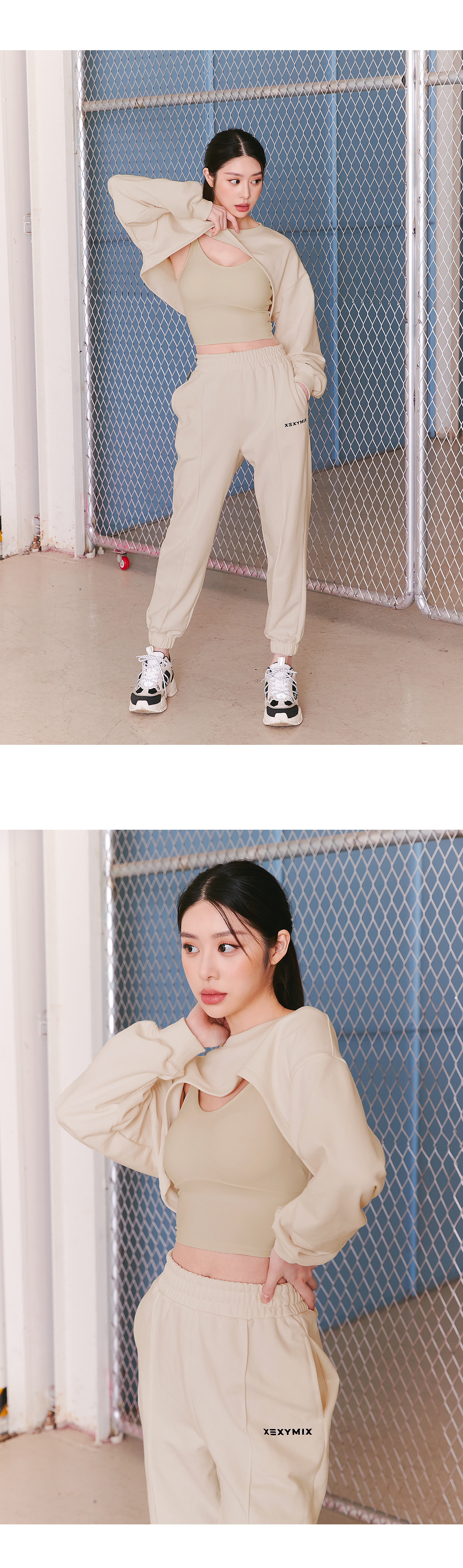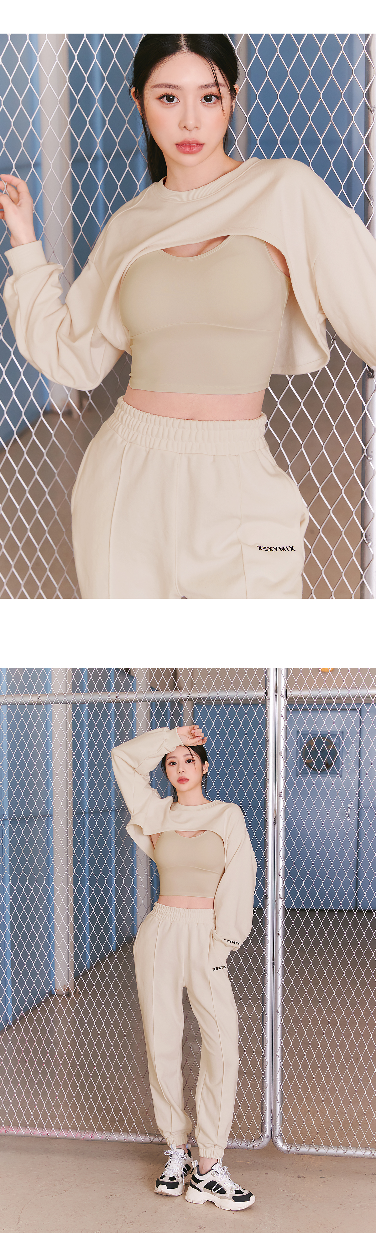 크롭 브라탑과 레이어드하여 트임 디테일을 연출해 캐주얼하면서도 스타일리시한 스타일을 연출 할 수 있는 트렌디한 커버 업 맨투맨이에요. 두께감 있는 3단 쮸리 소재를 좀 더 가볍고 부드러운 터치의 소재 혼용률 배합으로 편직한 소재예요. 부드러운 터치감을 살리고 세탁 시 옷이 변형되는 현상을 줄이도록 덤블워싱 기법과 텐타가공으로 공정을 거쳤어요. 넥라인과 소맷단은 더욱 탄탄한 원단으로 제작되어, 안정적인 형태를 유지해주면서 볼륨감 있는 핏을 연출해줘요. 왼쪽 소매에 젝시믹스 로고 자수 디테일을 더해, 디자인 포인트를 줌과 동시에 브랜드의 아이덴티티를 완성해줘요. 유니크한 디자인이면서, 어디에나 매치하기 좋은 컬러들로 구성되어 있어 다양하게 활용하기 좋은 아이템이에요.