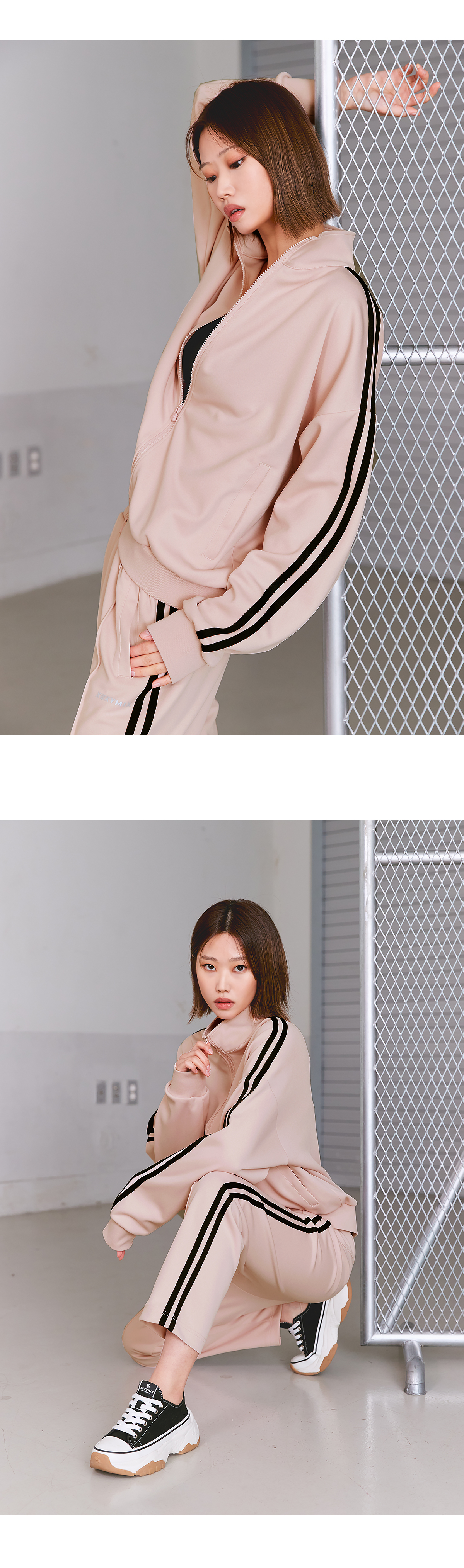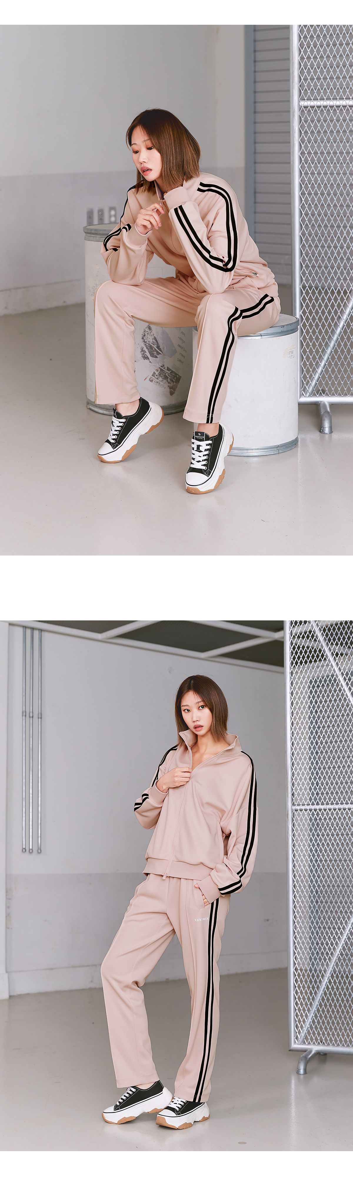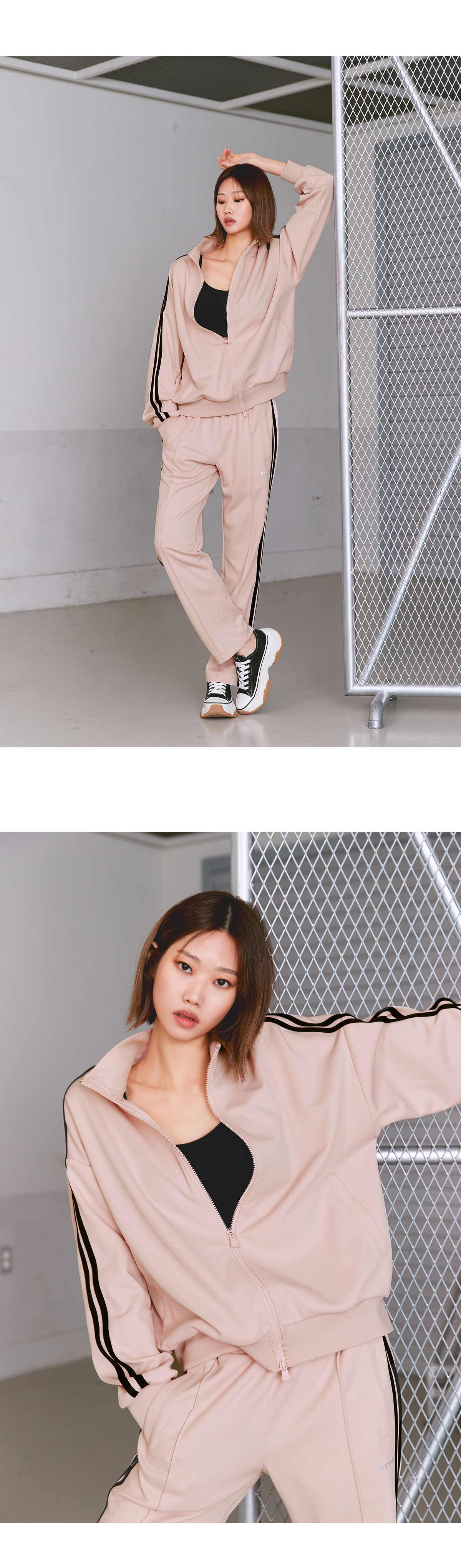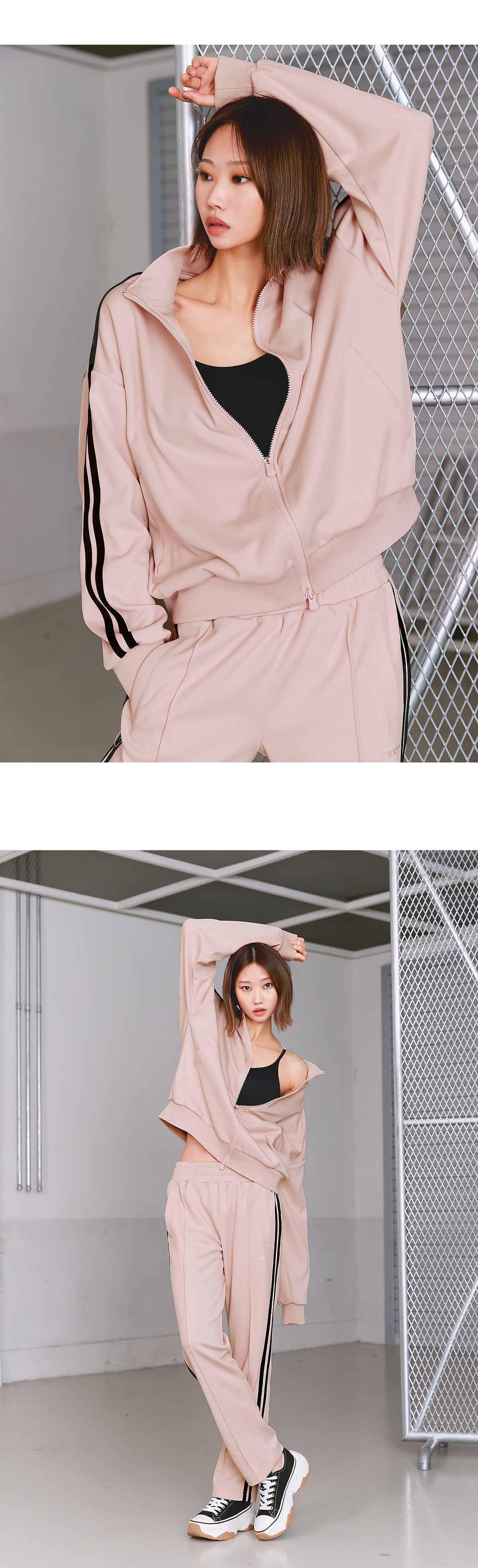 여유로운 루즈핏부터 세미 오버핏까지 다양한 사이즈로 원하는 핏으로 선택 가능한 트렌디하고 깔끔한 디자인의 라인 트랙 집업이에요. 고급 트랙 저지 소재로 매트하고 소프트한 컬러감이 고급스러운 느낌을 줘요. 내구성이 강한 원단으로 세탁이나, 야외 활동 시에도 변형이 없어요. 소매 옆선을 따라 들어간 라인 디테일이 슬림하고 긴 팔선을 연출해 주고 군더더기 없는 스포티한 무드를 완성해 줘요. 소매와 밑단은 탄력 있는 립원단으로 마감하여 안정감 있는 핏을 만들어주고 옷의 내구성을 높였어요. 앞 중심 지퍼는 양방향 오픈이 가능한 2 way 지퍼로 착용 시 활동성을 높여주고 다양한 스타일링을 가능하게 해줘요. 사이드 포켓은 히든 오토락 지퍼 디테일로 소지품을 안전하게 보관할 수 있도록 해줘요. 라인 트랙 팬츠 (XA5364G) 와 셋업 제품으로 함께 코디하면 더욱 완벽한 스트릿 무드를 연출할 수 있어요. S, M 사이즈는 어깨선을 여유 있게 디자인한 드롭 숄더 스타일로 흐르는 듯한 넉넉한 루즈핏을 연출할 수 있고, L, XL 사이즈는 부담 없는 세미 오버핏으로 성별이나 체형에 상관없이 입을 수 있어요.