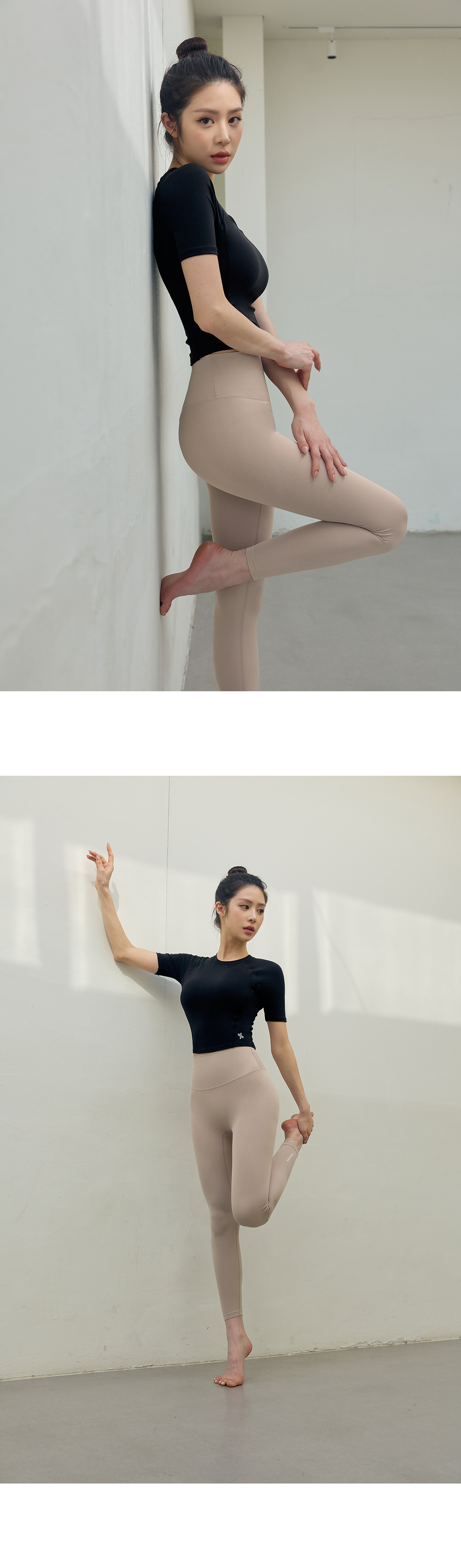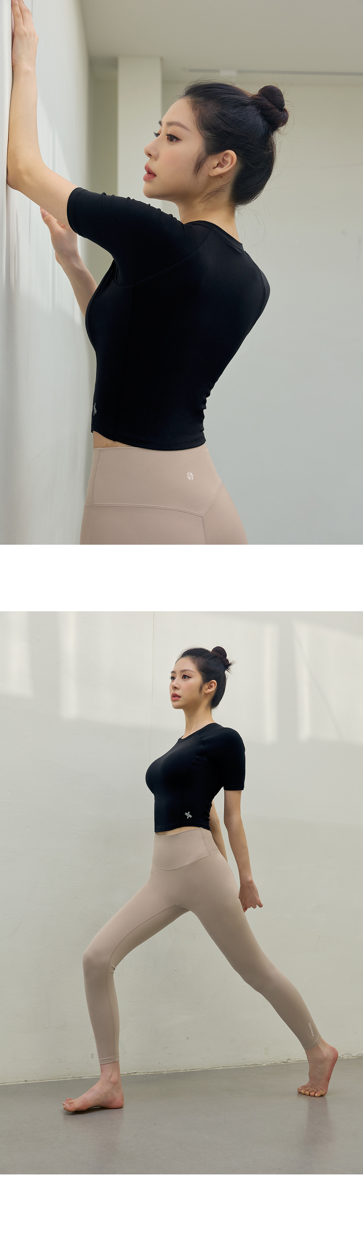 겉감은 코튼과 같은 부드러운 촉감의 고급 요가복 소재를 업그레이드해 가벼운 중량과 뛰어난 텐션과 리커버리를 보여줘요.