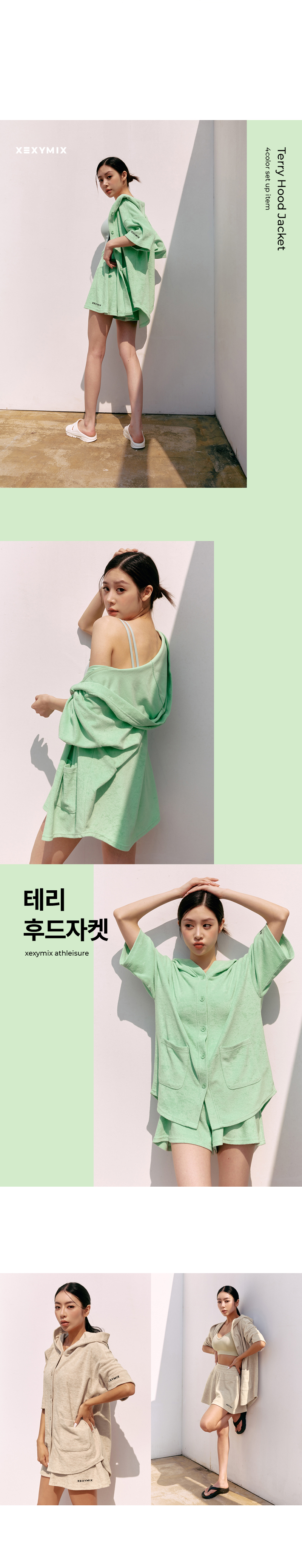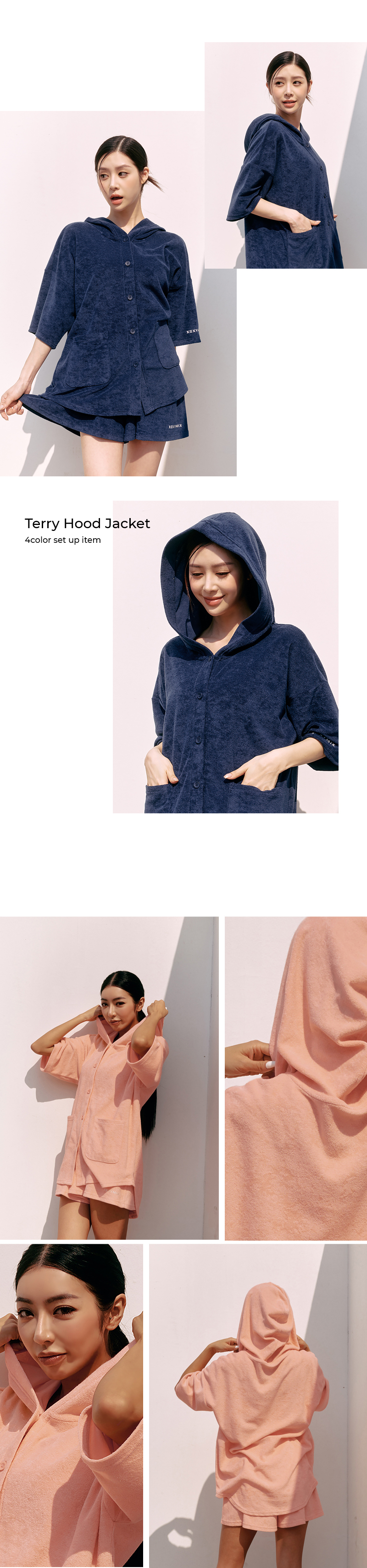 여유로운 루즈핏으로 편하게 걸치기 좋은 테리후드 재킷이에요. 베이직한 나이트네이비, 웜샌드 컬러부터 상큼한 캔디피치, 오펄민트까지 취향에 따라 고르기 좋은 컬러로 구성됐어요. 톡톡한 코튼테리 소재는 피부에 닿는 느낌이 타월처럼 부드럽고 흡습성이 좋아 여름철 물놀이 활동에도 적합해요. 입고 벗기 편한 앞중심의 버튼 디테일은 클로징해서 단독으로 입기 좋고, 오픈해서 가볍게 걸치는 아우터로 활용하기도 좋아요. 루즈핏의 긴 기장이 힙선을 덮어주어 자연스럽게 체형을 커버해주고, 넉넉한 사이즈의 후드는 착용 시에 머리를 편하게 감싸줘요. 양 사이드 아웃포켓으로 간단한 소지품을 넣을 수 있어 실용적이에요. 세트 하의인 XA5387G 테리 플레어 쇼츠와 셋업으로 연출하면 더 귀엽고 매력적인 애슬레저 룩 완성! 심플한 디자인에 데일리로 활용하기 좋은 테리 후드 재킷과 매일 편안한 휴식 같은 시간을 만들어 보세요.