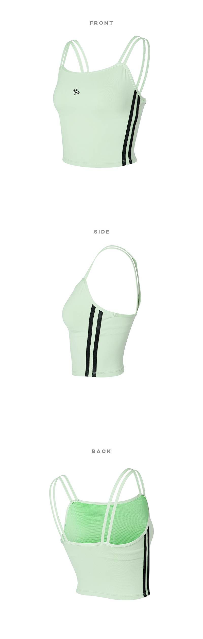 편안한 코튼 터치 액티브 웨어 소재인 젤라 원단에 양 사이드 더블 배색 트랙 라인이 매력적인 브라탑이에요. 젤라는 뛰어난 내구성과 피부에 닿는 촉감이 부드러운 소재로, 땀을 빨리 흡수하고 말려주어 운동이 끝난 뒤에도 쾌적함을 유지해줘요. 두 줄 스트랩으로 바스트를 들뜸 없이 안정적으로 지지해주어 액티브 활동 시 불편함을 주지 않아 착용감이 좋아요. 양 사이드 트랙 라인은 디자인 포인트를 줌과 동시에 허리가 가늘어 보이는 시각적 효과를 줘요. 전면 중심에는 젝시믹스의 시그니처를 나타내는 심볼 라인으로 심플한 포인트를 더했어요.