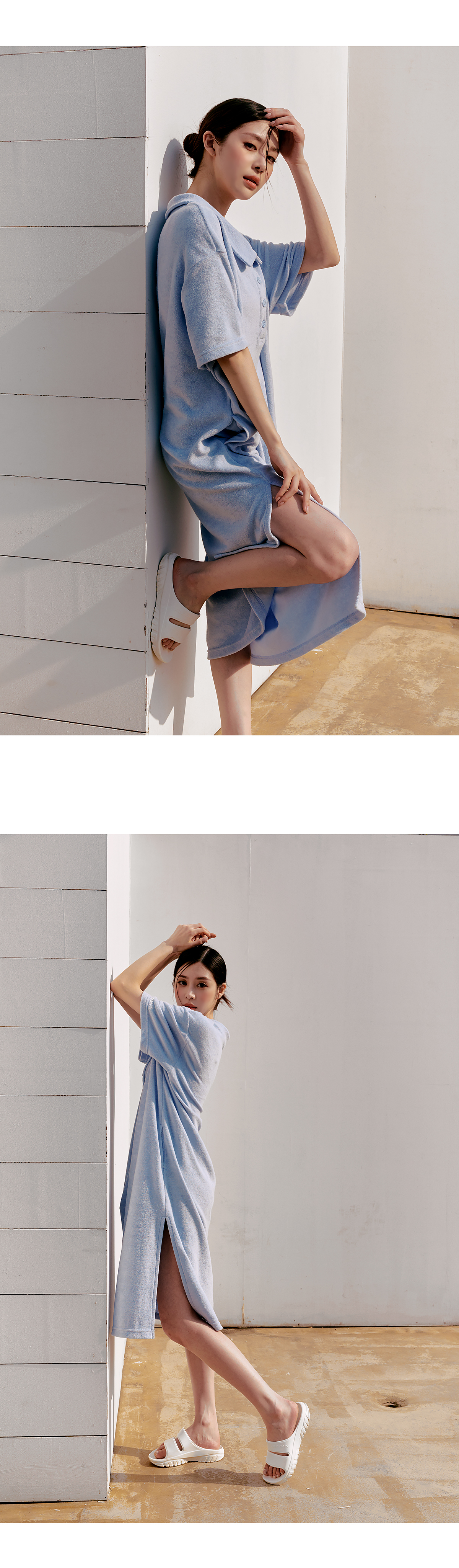 보드라운 테리 소재감으로 홈 웨어, 워터 스포츠 직후 등 언제라도 착용하기 좋은 원피스예요.