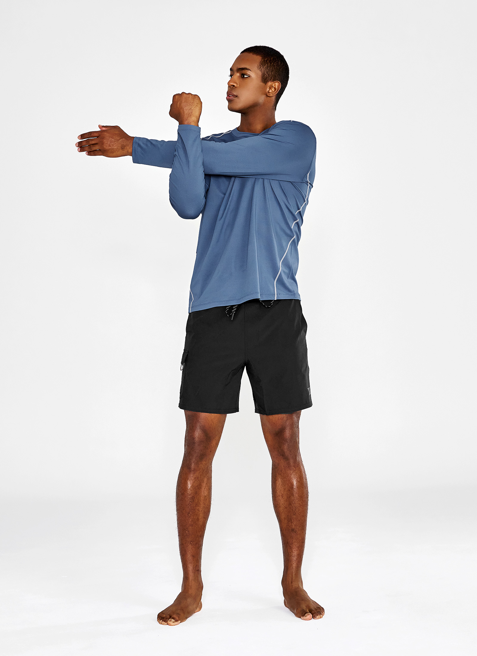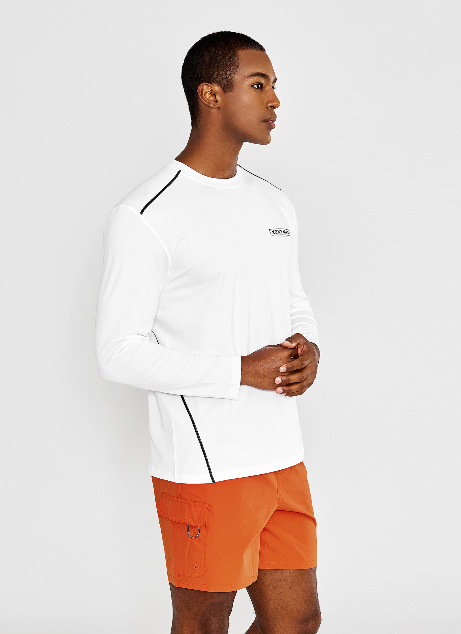 다양한 퍼포먼스에 몸을 따라 자연스럽게 떨어지는 레귤러 핏으로 워터는 물론 다양한 스포츠 활동 시 착용하기 좋아요.