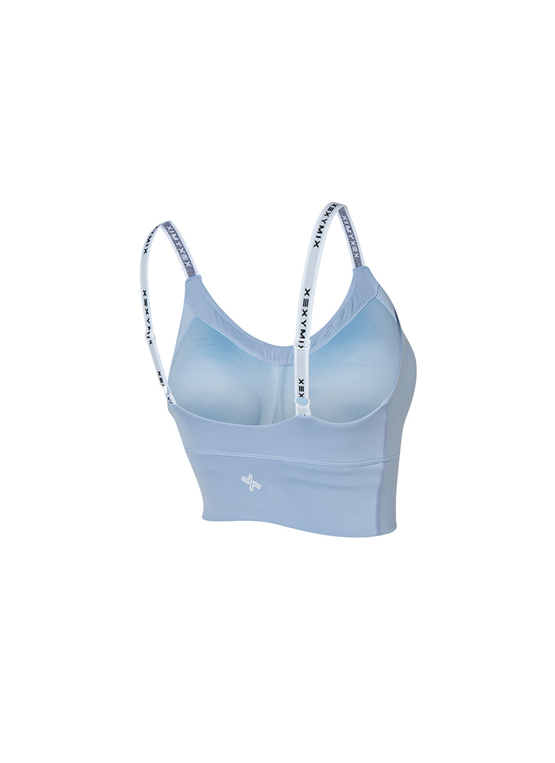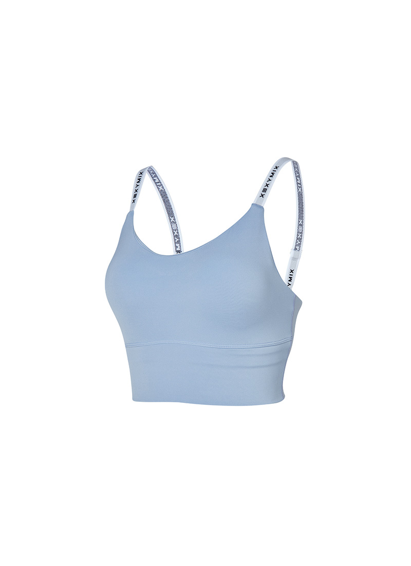 어깨 스트랩 레터링 로고와 뒤판 밑단 중심 젝시믹스 심볼 로고로 FABRIC INFO