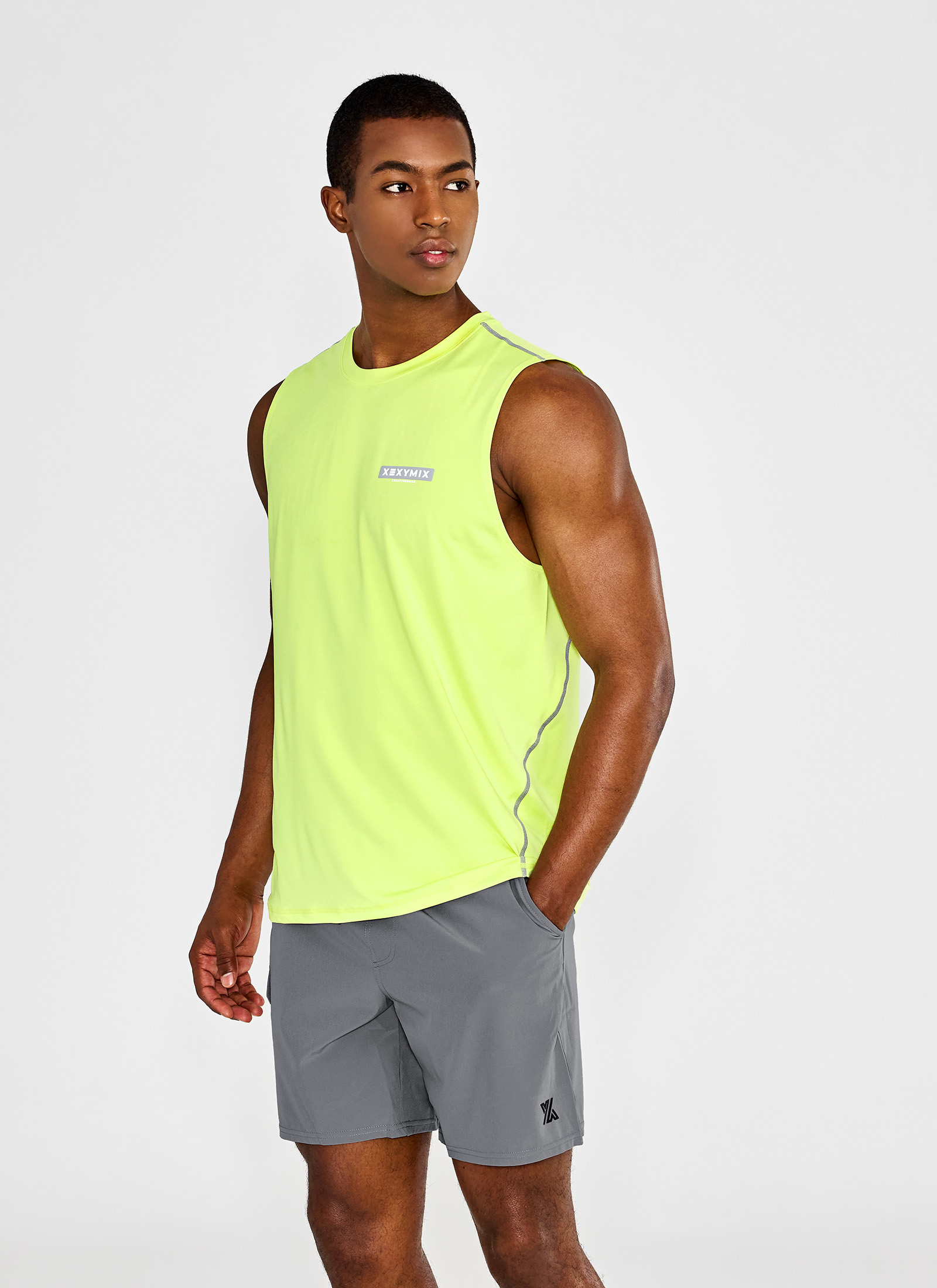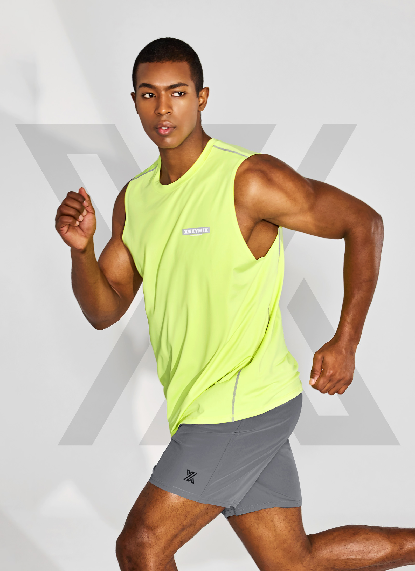 젝시믹스의 왼쪽 하단에 젝시맨즈 심볼을 넣어 브랜드 아이덴티티를 더해주는 포인트를 더했어요. TECH POINT