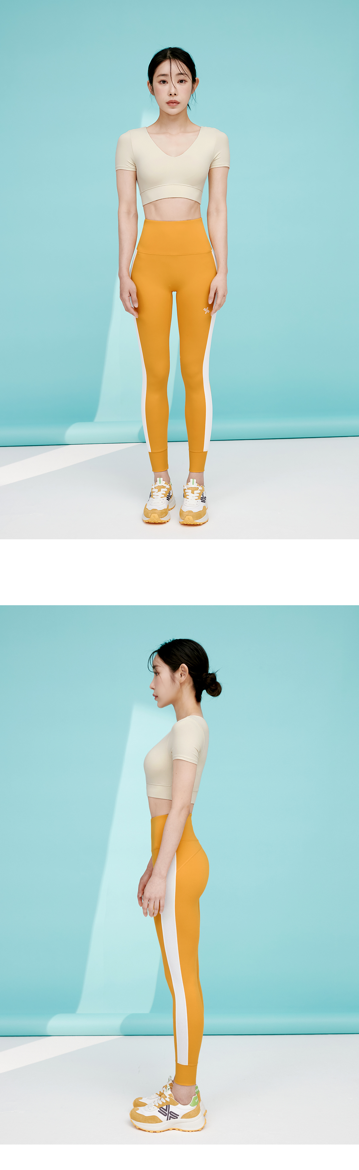 겉감은 코튼과 같은 부드러운 촉감의 고급 요가복 소재인 나일론 스판을 업그레이드한 원단으로 중량이 가볍고 텐션과 리커버리가 뛰어나요.
