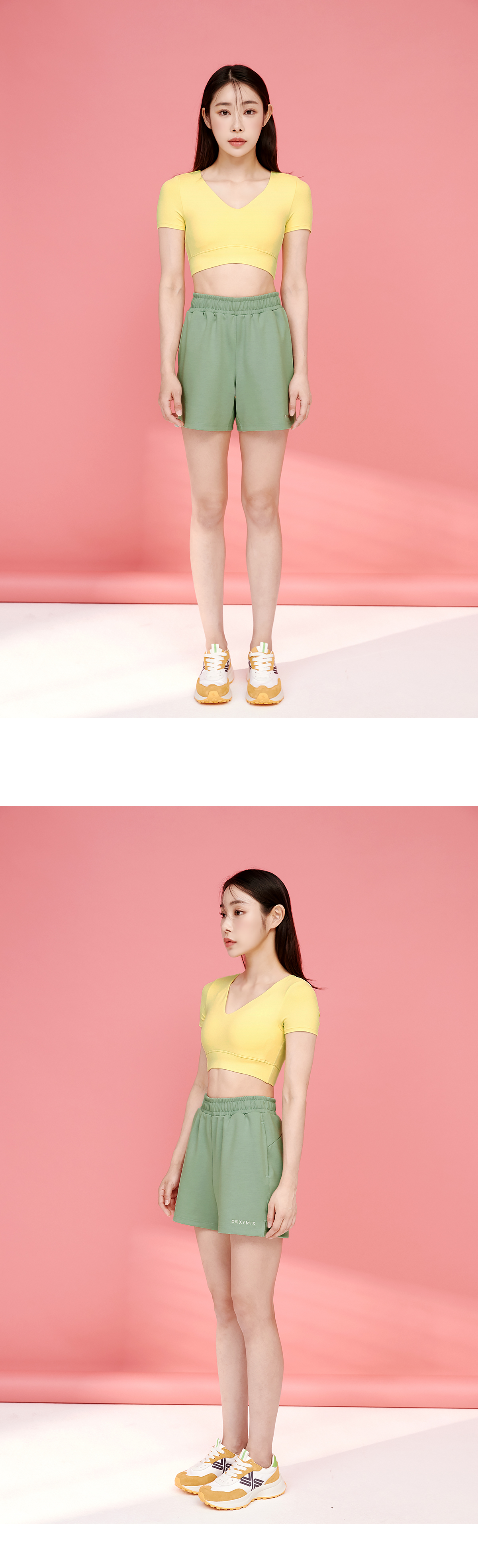 가슴선 아래까지 오는 크롭 기장에 체형에 편안하게 밀착하는 입체 패턴으로 완벽한 슬림 아웃핏을 경험해 보세요.