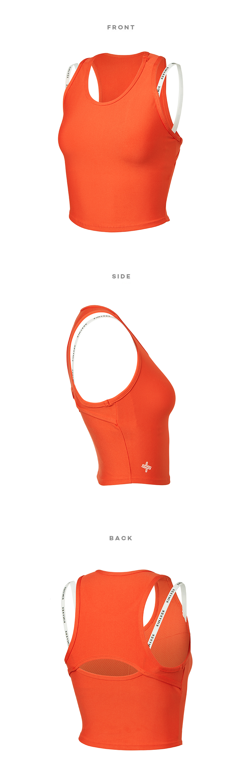 U 네크라인으로 착용 시 안정감을 주고, 백라인 컷오프 디테일로 더 활동적이고 유니크한 실루엣을 완성해 주는 서포트탑이에요.