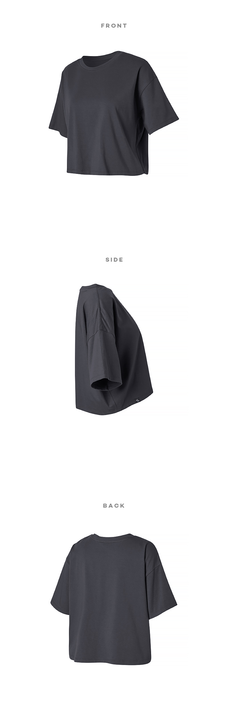 베이직한 라운드 넥 디자인에 움직임이 편안한 반팔 티셔츠예요. 짧지 않은 크롭기장에 드롭 숄더라인으로 박시하게 떨어져 언제 어디서나 부담스럽지 않게 착용할 수 있어요. 레깅스와 함께 코디하면 더욱 캐주얼한 무드를 연출할 수 있어요. 원단은 소프트한 면 소재와 실키하고 부드러운 모달 소재를 혼방하여 피부에 닿는 안감 부분은 부드러운 착용감을 선사하며 겉감은 실키하게 떨어지는 표면감을 보여줘요.