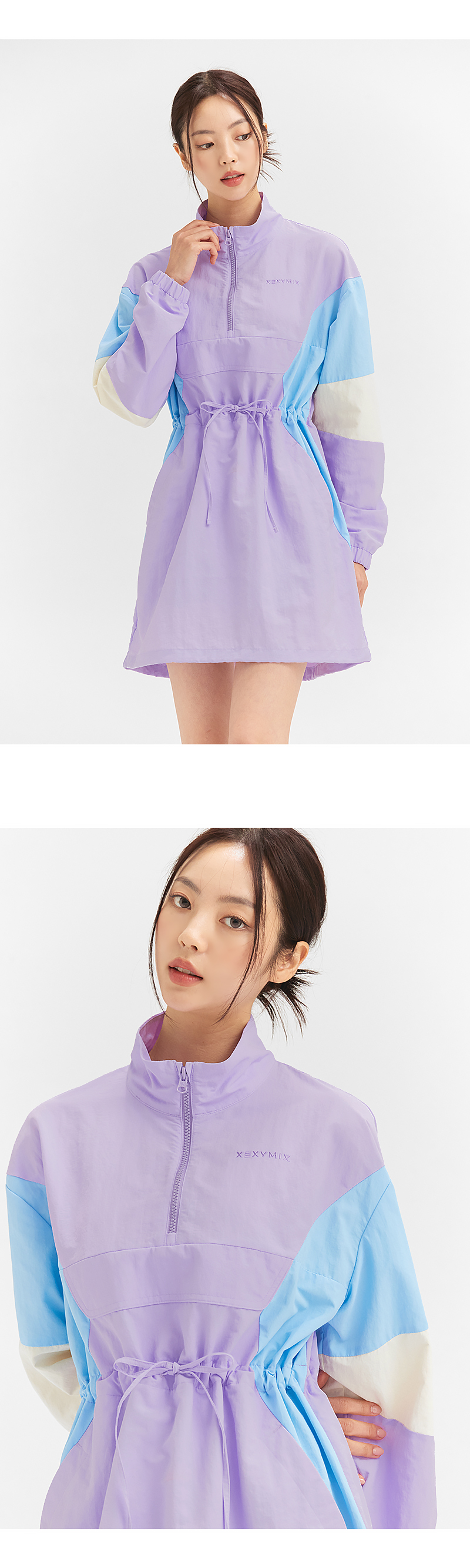 넉넉한 실루엣으로 편안하게 입을 수 있는 스포티한 감성의 아노락 원피스예요. 내구성이 뛰어난 나일론, 폴리에스터 혼방 소재로 구김이 잘 가지 않고 생활 오염에 강해 일상생활, 다양한 스포츠 활동에 적합해요. 백라인 절개부분 안쪽에 메쉬 안감을 덧대어 통기성이 좋으며, 쾌적함을 유지해 줘요. 소매부터 허리선을 따라 이어지는 컬러 블록 배색이 캐주얼한 디자인에 유니크한 포인트를 더해줘요. 허리 스트링을 조이면 허리선을 강조해주어 슬림해 보이고, 스트링을 풀어주면 넉넉한 핏으로 편안하게 입을 수 있어요. 절개선을 따라 사이드 포켓이 들어가 디자인을 해치지 않으면서 소지품 수납이 가능해요. 밑단 스트링 스토퍼를 조절하여 볼륨감 있는 실루엣, 군살을 커버해주는 루즈핏 두가지 스타일을 연출할 수 있어요. 가슴 좌측의 젝시믹스 레터링 자수와 뒷목 부분 심볼자수가 포인트 디테일과 브랜드 아이덴티티를 보여줘요. 단독으로 입어도 부담 없는 미디 기장이며, 레깅스를 함께 코디하면 활동성을 더욱 높여줘요. 같은 디자인의 키즈 상품도 출시되어 아이와 함께 입는 패밀리 웨어로 만나보세요.