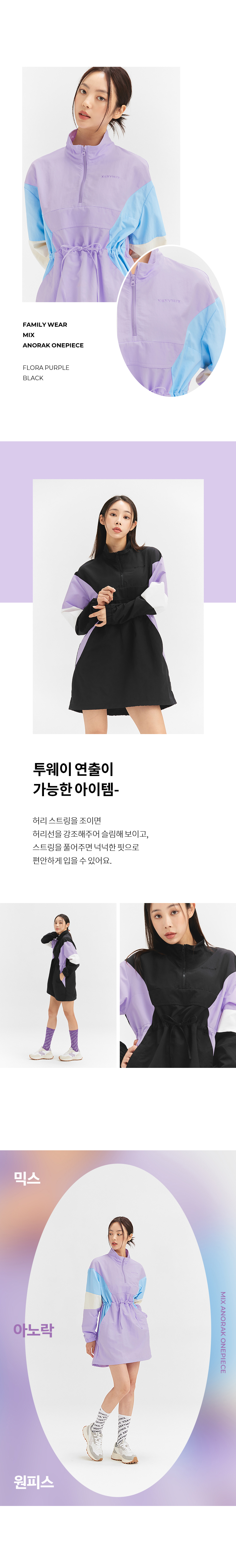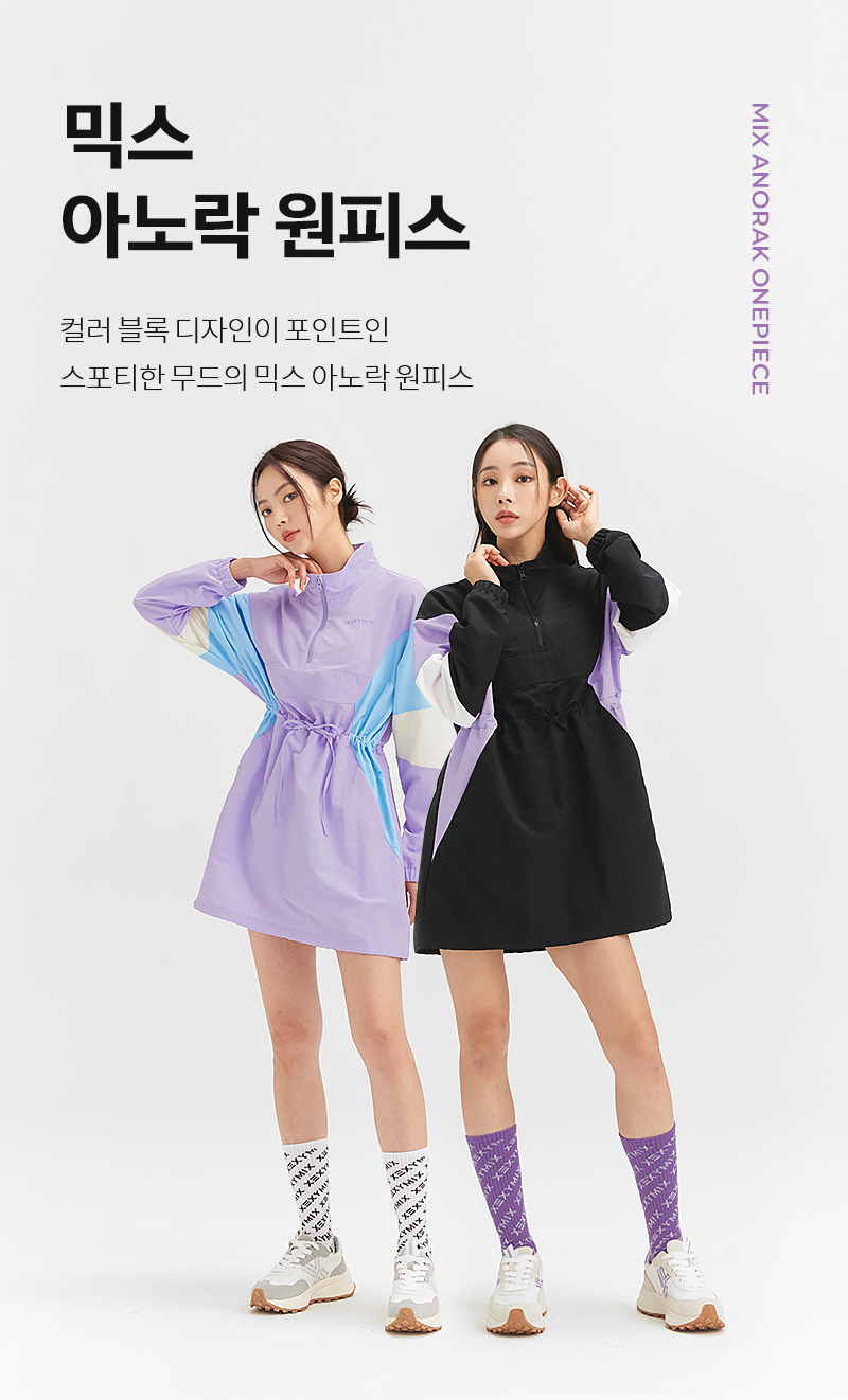 넉넉한 실루엣으로 편안하게 입을 수 있는 스포티한 감성의 아노락 원피스예요. 내구성이 뛰어난 나일론, 폴리에스터 혼방 소재로 구김이 잘 가지 않고 생활 오염에 강해 일상생활, 다양한 스포츠 활동에 적합해요. 백라인 절개부분 안쪽에 메쉬 안감을 덧대어 통기성이 좋으며, 쾌적함을 유지해 줘요. 소매부터 허리선을 따라 이어지는 컬러 블록 배색이 캐주얼한 디자인에 유니크한 포인트를 더해줘요. 허리 스트링을 조이면 허리선을 강조해주어 슬림해 보이고, 스트링을 풀어주면 넉넉한 핏으로 편안하게 입을 수 있어요. 절개선을 따라 사이드 포켓이 들어가 디자인을 해치지 않으면서 소지품 수납이 가능해요. 밑단 스트링 스토퍼를 조절하여 볼륨감 있는 실루엣, 군살을 커버해주는 루즈핏 두가지 스타일을 연출할 수 있어요. 가슴 좌측의 젝시믹스 레터링 자수와 뒷목 부분 심볼자수가 포인트 디테일과 브랜드 아이덴티티를 보여줘요. 단독으로 입어도 부담 없는 미디 기장이며, 레깅스를 함께 코디하면 활동성을 더욱 높여줘요. 같은 디자인의 키즈 상품도 출시되어 아이와 함께 입는 패밀리 웨어로 만나보세요.