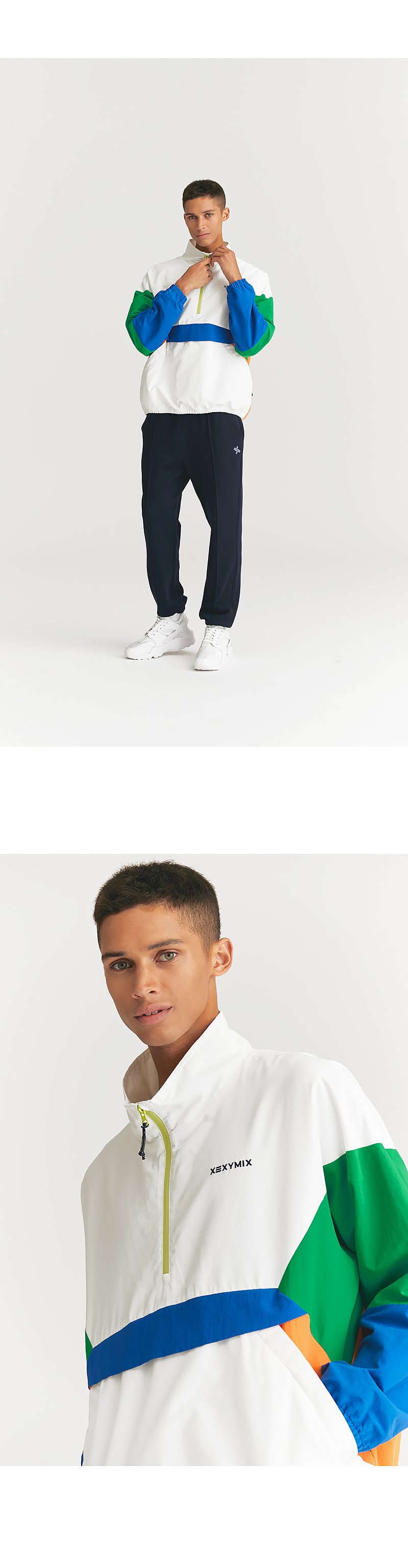 컬러 블록 배색이 스포티한 무드를 더해주는 플레이 아노락 점퍼예요. 구김이 잘 가지 않고, 생활 오염에 강한 나일론 소재와 폴리에스터 소재를 블록 디자인으로 배치해 간절기 야외활동에 실용적으로 입을 수 있어요. 전체에 얇은 기모가 들어간 안감을 더해 피부에 닿았을 때 부드러운 촉감을 주며, 소매부분은 부드러운 면의 기모를 사용해 착용 시 편안한 착용감을 더해줬어요. 하이넥으로 올라오는 넥라인이 바람의 유입을 막아주어 방풍효과가 뛰어나고 아노락 디자인으로 레트로한 무드를 느낄 수 있어요. 프런트, 백라인, 소매의 컬러 배색이 액티비티한 스포티 감성을 더해줘요. 지퍼를 삽입한 프런트 양쪽 포켓은 안전하게 소지품 보관이 가능해요. 소매와 밑단에 밴드를 삽입해 볼륨감 있는 루즈핏을 연출해 줘요. 좌측 가슴 젝시믹스 로고 자수와 뒷넥 심볼 자수로 브랜드의 아이덴티티를 깔끔하게 보여줬어요. 같은 디자인의 키즈 상품도 출시되어 가족과 함께 입는 패밀리 웨어로 만나보세요.