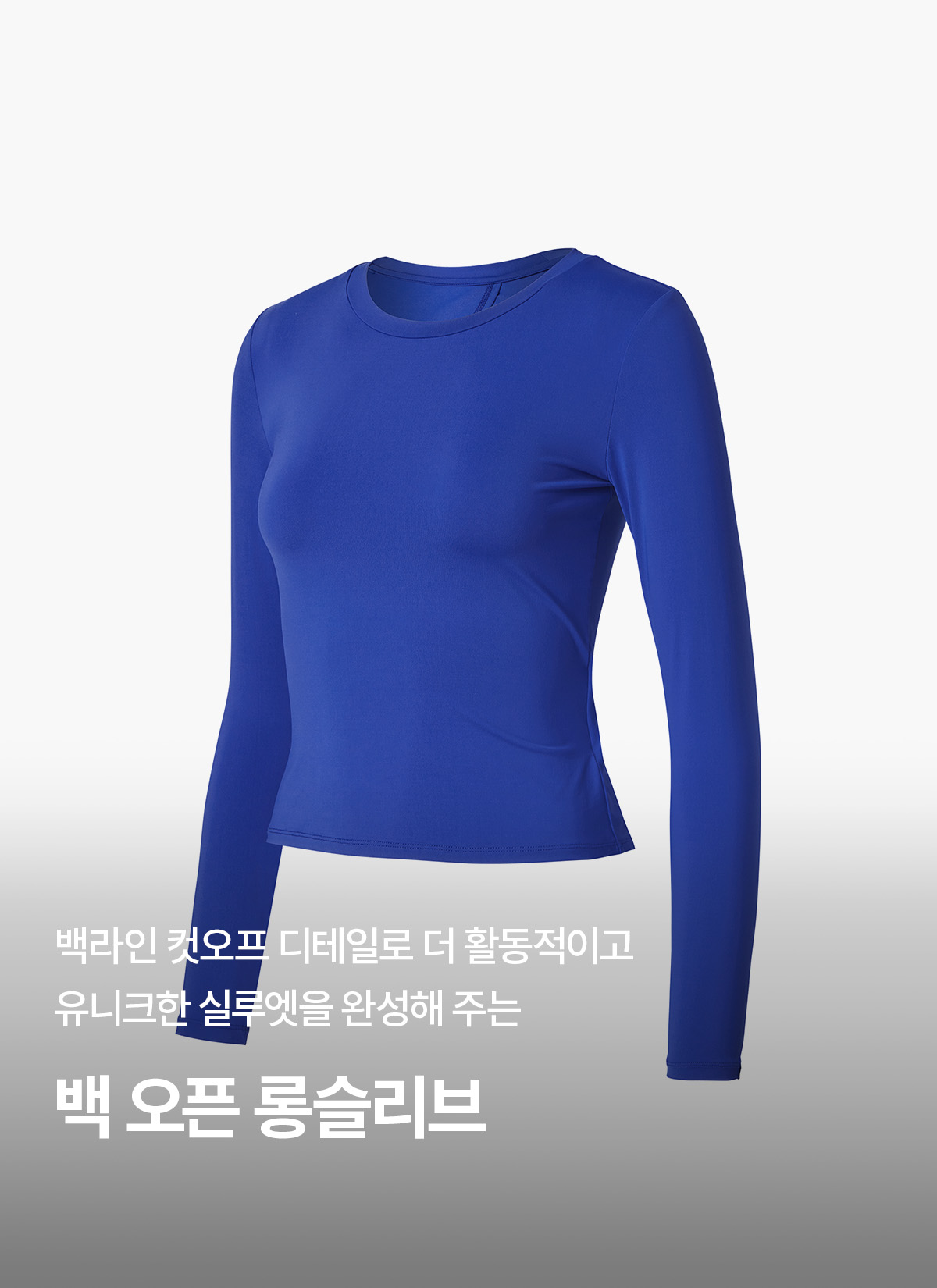 백라인 컷오프 디테일로 더 활동적이고 유니크한 실루엣을 완성해 주는 백 오픈 롱슬리브예요. 나일론 쿨링 원사를 사용한 고급 기능성 소재로 피부에 닿았을 때 시원한 촉감을 느낄 수 있어요. 흡습성과 통기성이 뛰어나 쾌적한 착용감을 주며, 땀이 많이 배출되는 퍼포먼스 웨어로 적합해요. 고급스러운 FD(Full-Dull) 소재의 매트한 표면이 컬러를 선명하게 나타내 주고, 부드럽고 소프트한 터치감을 느낄 수 있어요. 라운드형으로 디자인된 백라인 컷오프 디테일이 퍼포먼스 동작에 따라 자연스럽게 벌어져 상체를 유연하게 잡아주고 활동성을 높여줘요. 크로스 랩 디자인의 밑단이 허리 라인을 강조해줘 체형 보완에 용이해요. 왼쪽 소매 부분에 젝시믹스 포인트 라벨을 넣어 스포티한 브랜드 아이덴티티를 보여줬어요. 안정적인 라운드 넥라인으로 노출 부담이 없어 편안하게 입을 수 있어요. 전체적으로 너무 타이트 하지 않은 슬림핏으로 브라탑 위에 커버업 스타일로 매치하기 좋아요.