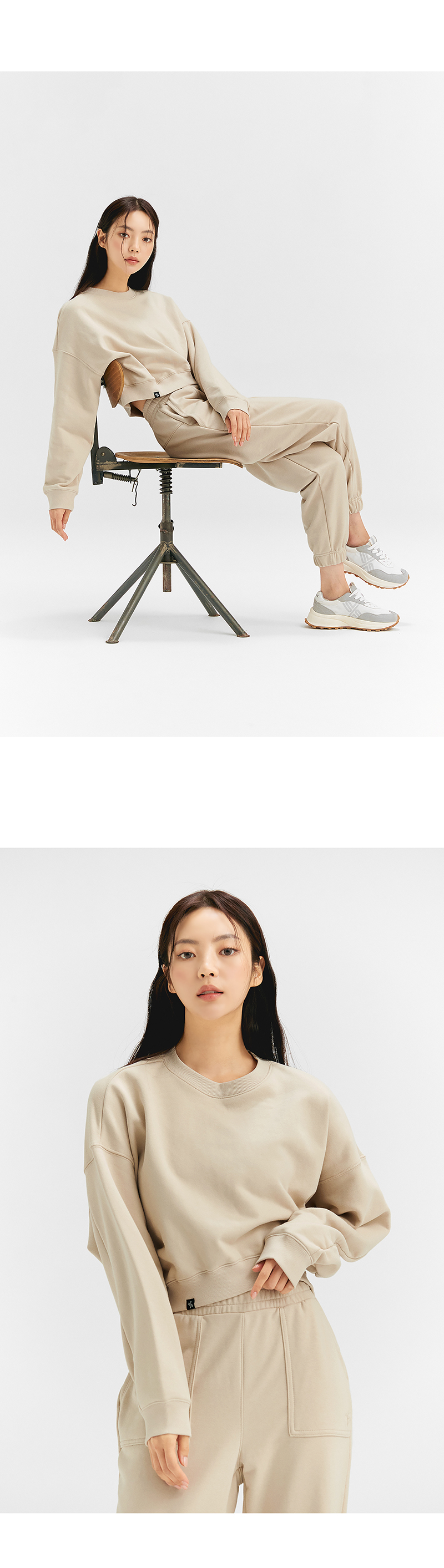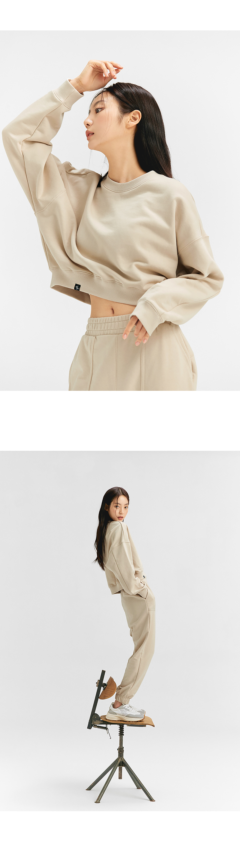 베이직한 라운드 넥라인과 어깨선을 여유 있게 디자인한 드롭 숄더 스타일로 루즈한 핏이 돋보이는 크롭 맨투맨이에요. 두께감이 있지만 더욱 가볍고 터치감이 부드러운 쭈리 소재로 간절기 맨투맨으로 입기 적합해요. 부드러운 터치감을 살리고 세탁 시 옷이 변형되는 현상을 줄이도록. 덤블워싱 기법과 텐타 가공을 거쳤어요. 뒷넥에는 젝시믹스의 심볼 로고 와펜 자수가 있어 액티브한 젝시믹스의 아이덴티티를 보여주고, 착용 시 프런트 밑단에 젝시믹스의 포인트 라벨을 삽입하여 러블리한 포인트를 만들어줘요. 베이직한 넥 라인과 소매를 신축성 있는 립 원단으로 마감하여 더욱 안정감 있는 착용감을 보여줘요. 앞뒤 언밸런스한 길이감과 라운딩형 밑단으로 다리가 더욱 길어 보이며 여유로운 드롭 숄더 스타일로 여성스러운 분위기를 만들어줘요. 부담스럽지 않은 크롭 기장으로 하이웨이스트 레깅스에도 트렌디한 데일리 웨어로도 스타일리시하게 매치할 수 있어요.