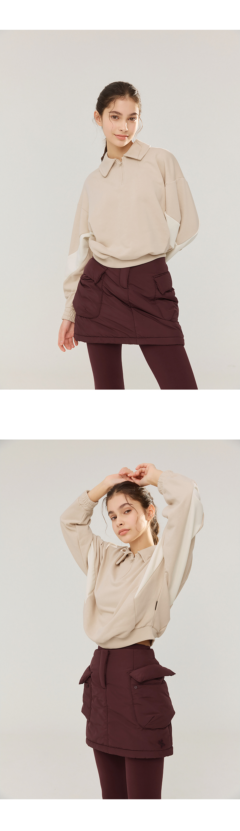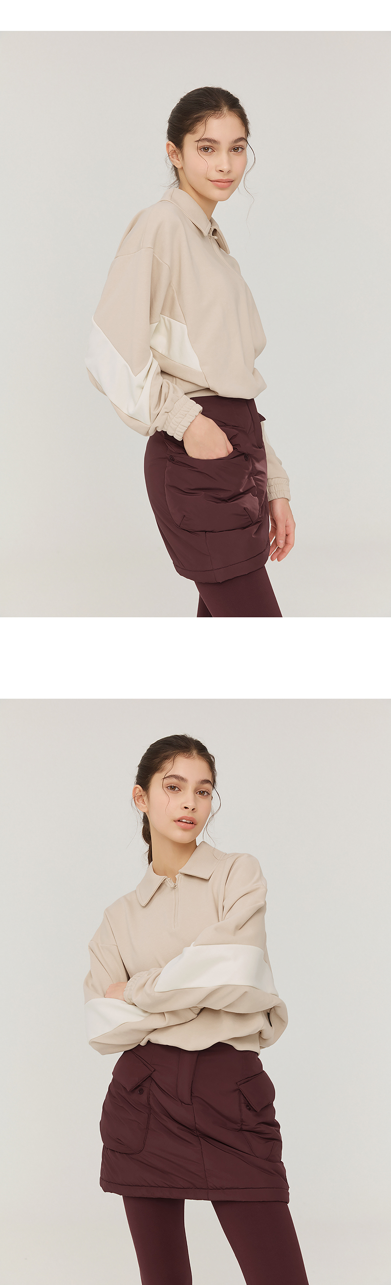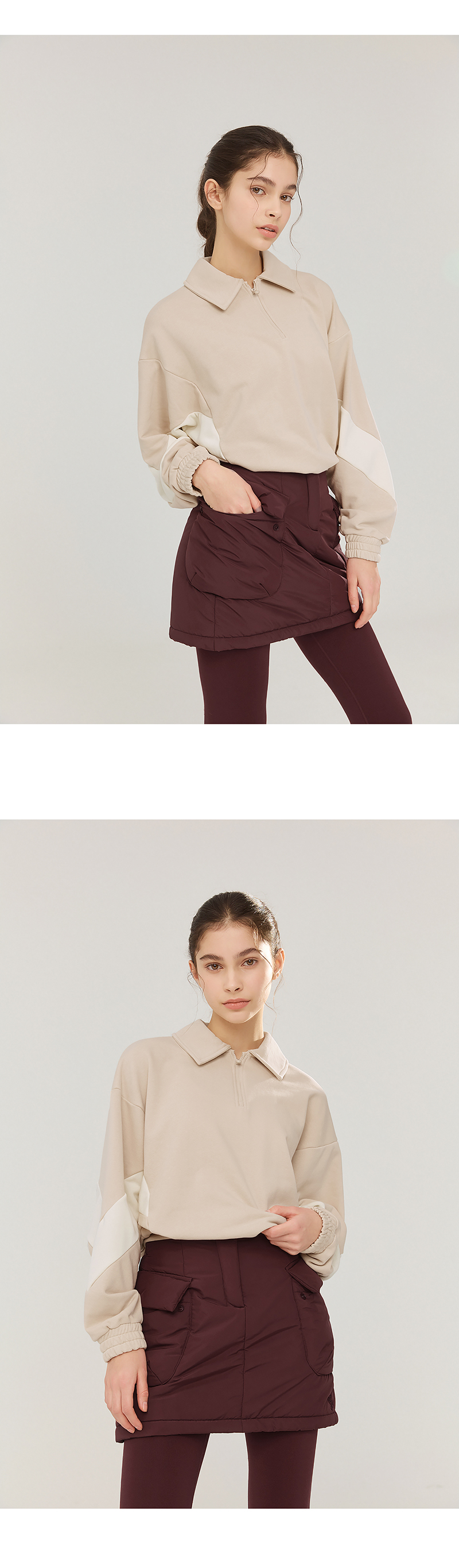 감각적인 캐주얼 룩을 완성해주는 배색 포인트 하프집업 맨투맨이에요. 면과 폴리에스터를 혼방한 두께감 있는 소재로 부드러운 터치감과 편안한 착용감이 좋아요. 덤블 워싱과 텐타 가공 처리로 섬유 날림과 수축 현상을 최소화하였고, 유연하고 소프트한 터치감을 느낄 수 있어요. 카라넥에 하프 집업이 결합된 디자인으로 입고 벗기 편리하도록 실용성을 높였고, 오픈 & 클로징으로 투웨이 연출이 가능해요. 돌먼 소매 디자인으로 둥글고 귀여운 핏이 연출되고, 소매의 컬러 배색이 스포티한 무드를 보여줘요. 어깨선을 여유 있게 디자인한 드롭 숄더 스타일로 군살을 가려주어 체형 보완 효과를 줘요. 소맷단에 밴드를 삽입해 흘러내리지 않도록 잡아주고, 두줄 스티치를 넣어 디자인 포인트를 더했어요. 밑단은 탄탄하고 복원력이 강한 립원단으로 마감해 옷의 안정적인 형태를 유지해줘요. 뒷목 중심 심볼 로고 자수와 좌측 사이드 부분의 포인트 라벨이 젝시믹스의 아이덴티티를 심플하게 보여줘요. 배색 포인트 플레어 스커트와 세트로 매치해 애슬레저 룩, 데일리 웨어로 연출해 보세요.