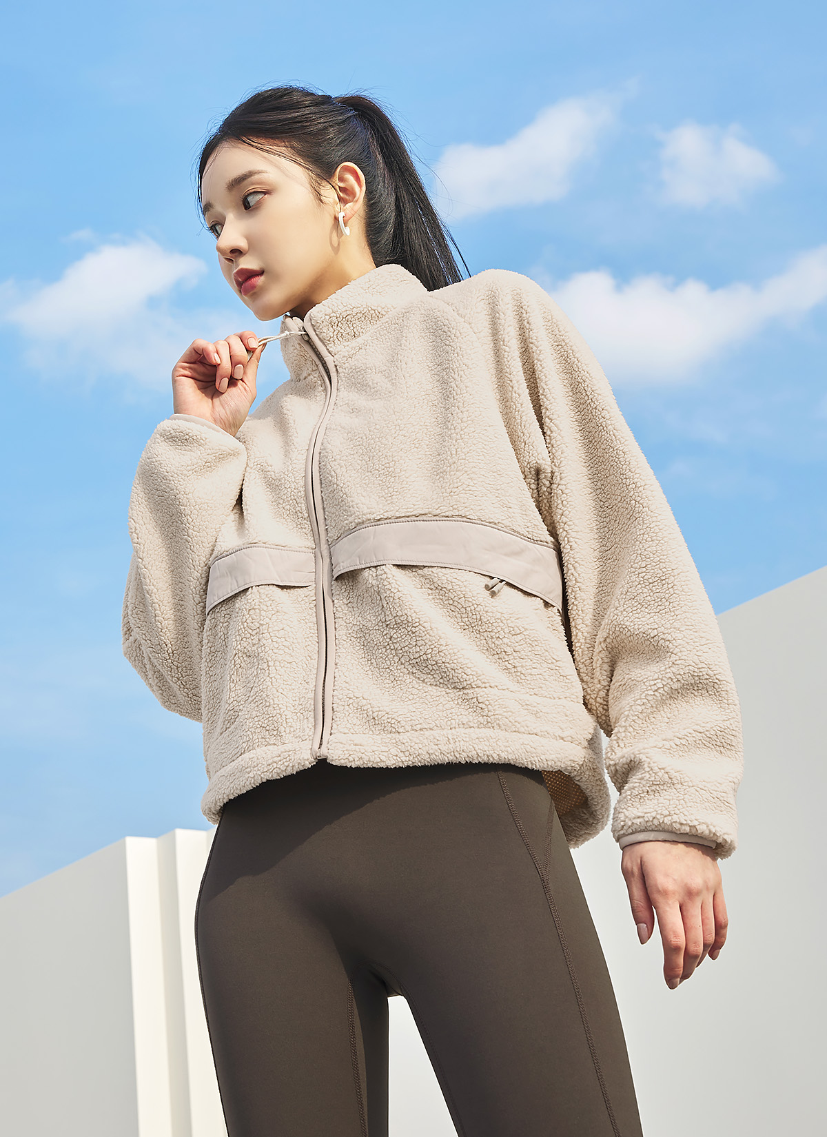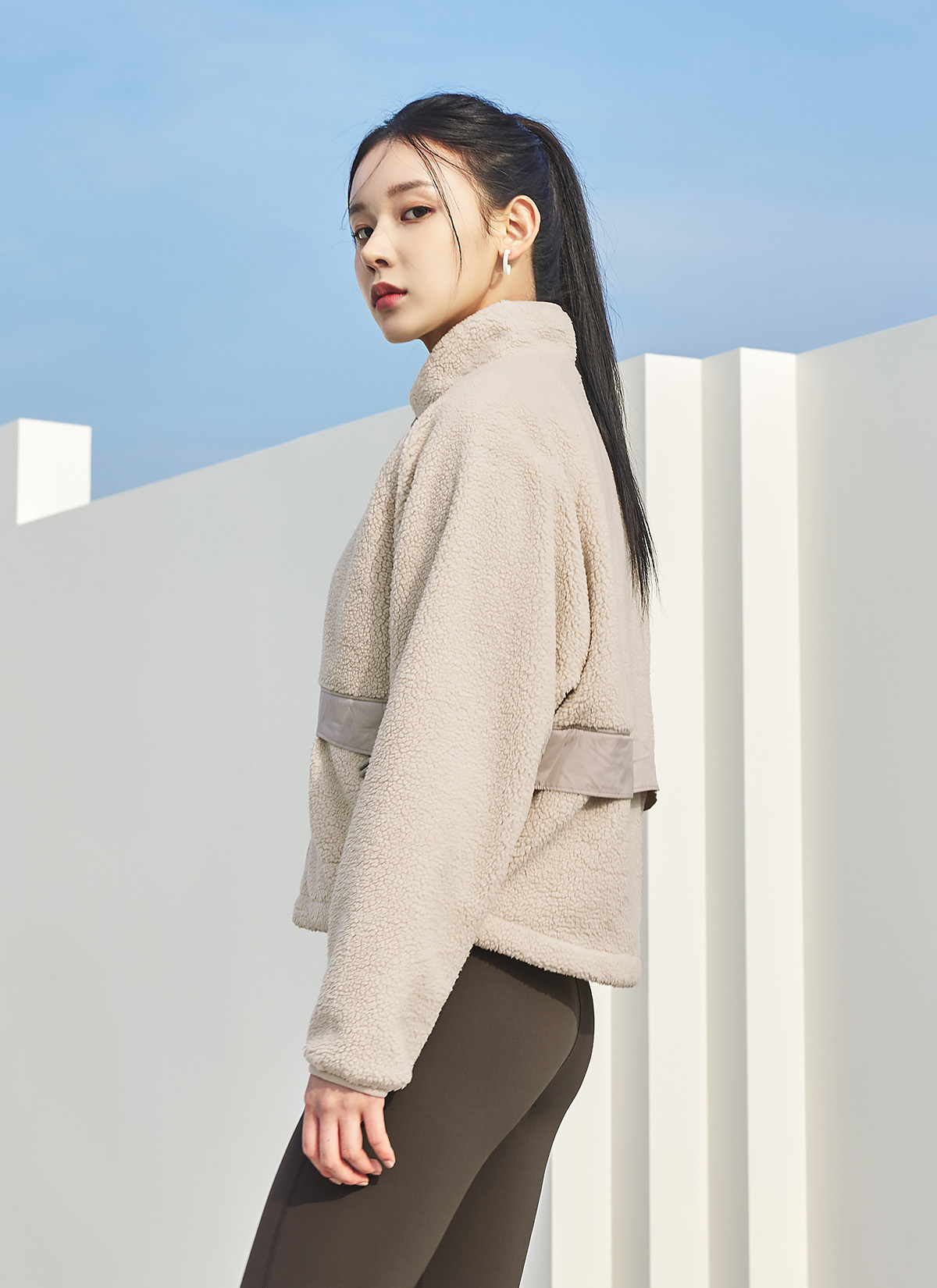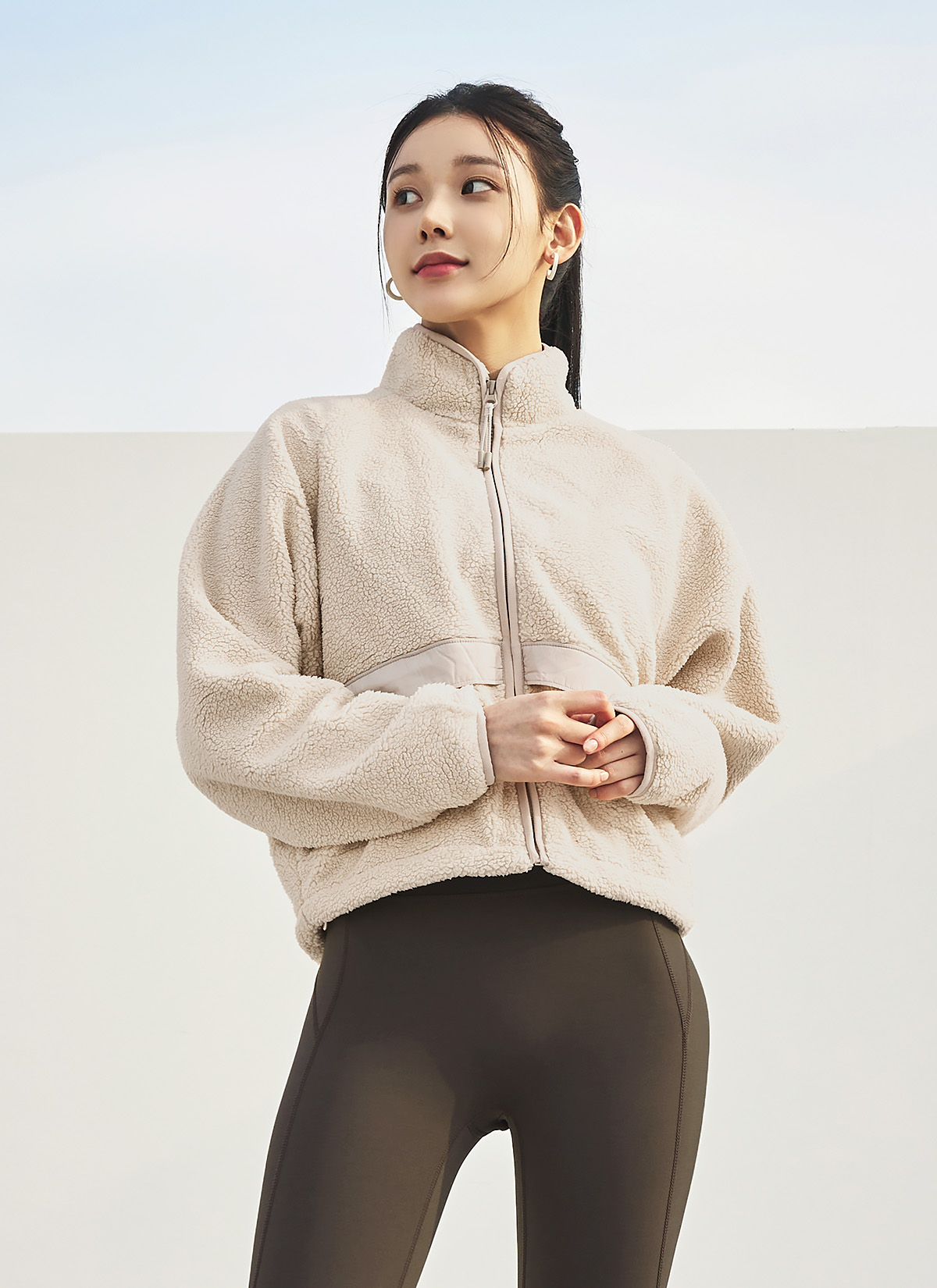 크롭 기장의 소프트 플리스 집업 자켓이에요.