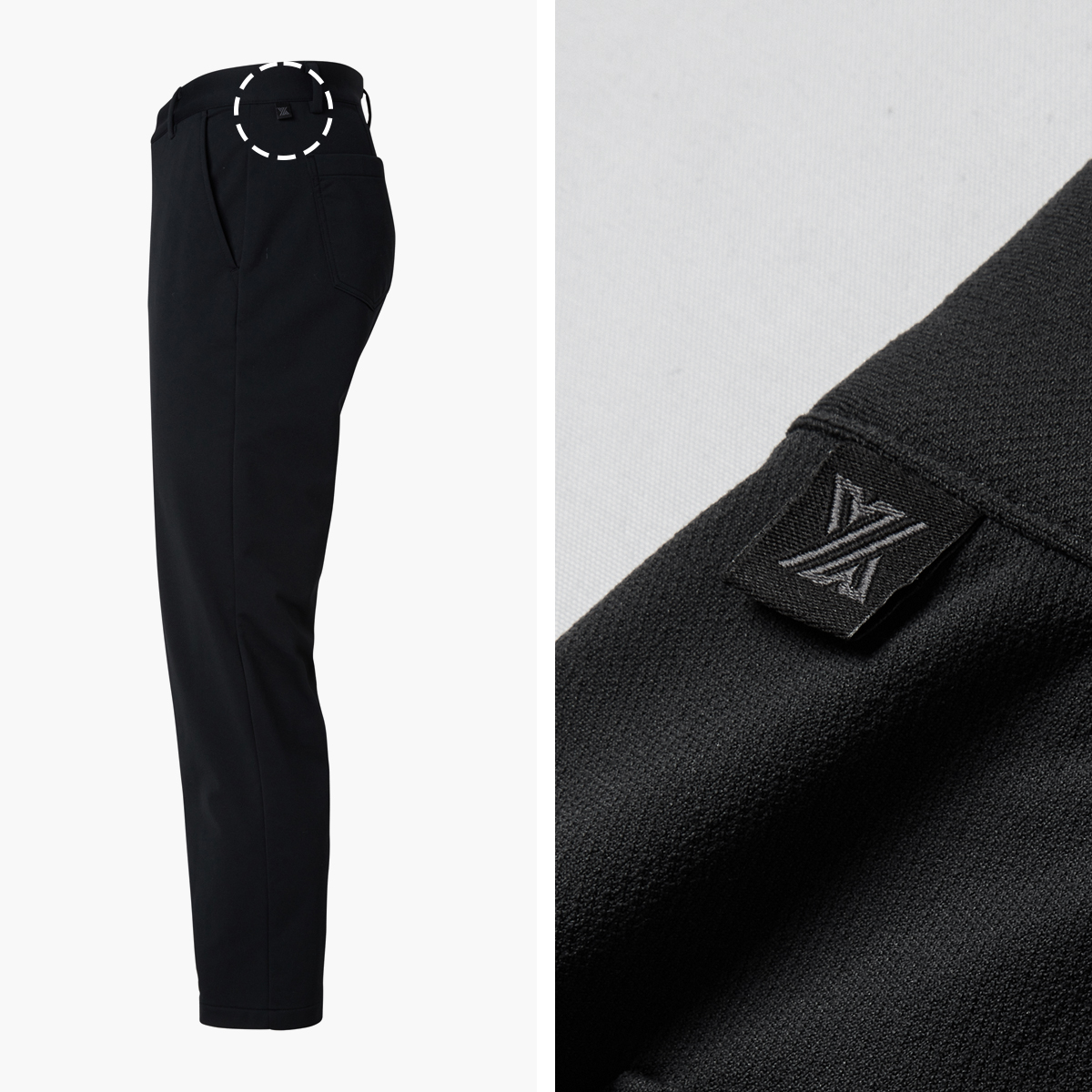 젝시믹스 골프의 아이덴티티를 보여주는 허릿단 뒷면 좌측에 젝시믹스 심볼 로고 라벨을 더해 브랜드의 아이덴티티를 깔끔하게 보여줬어요. FABRIC INFO