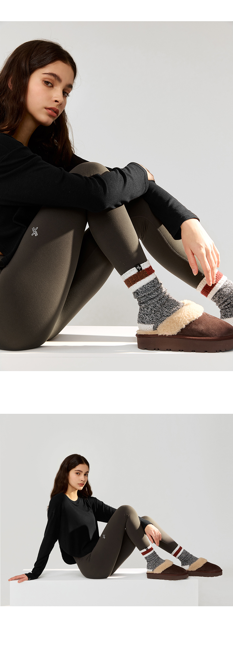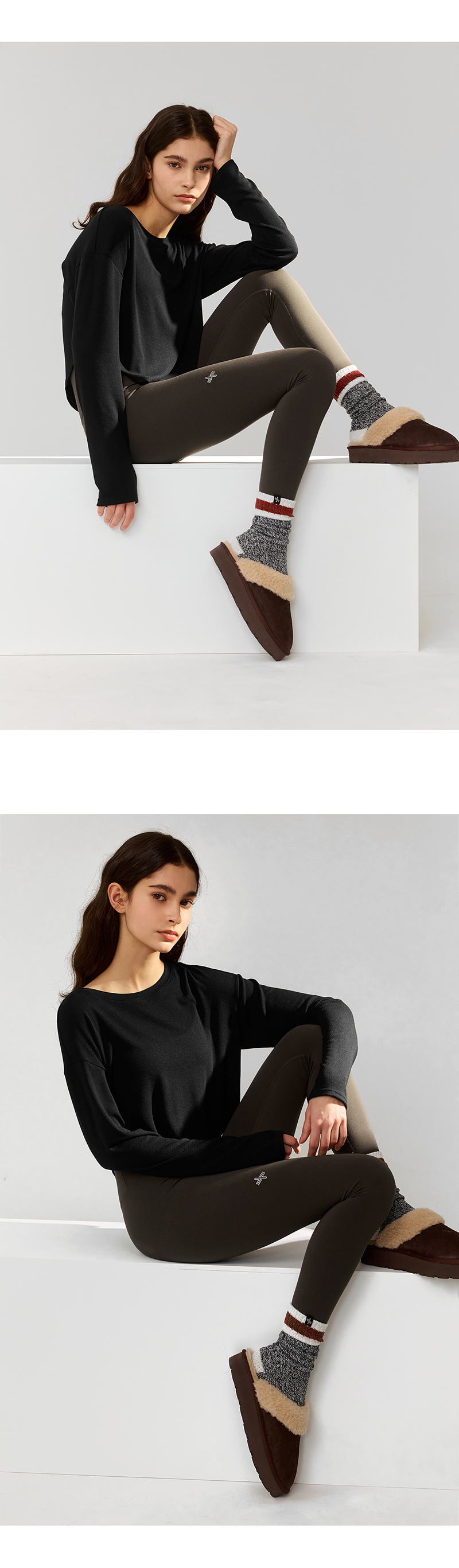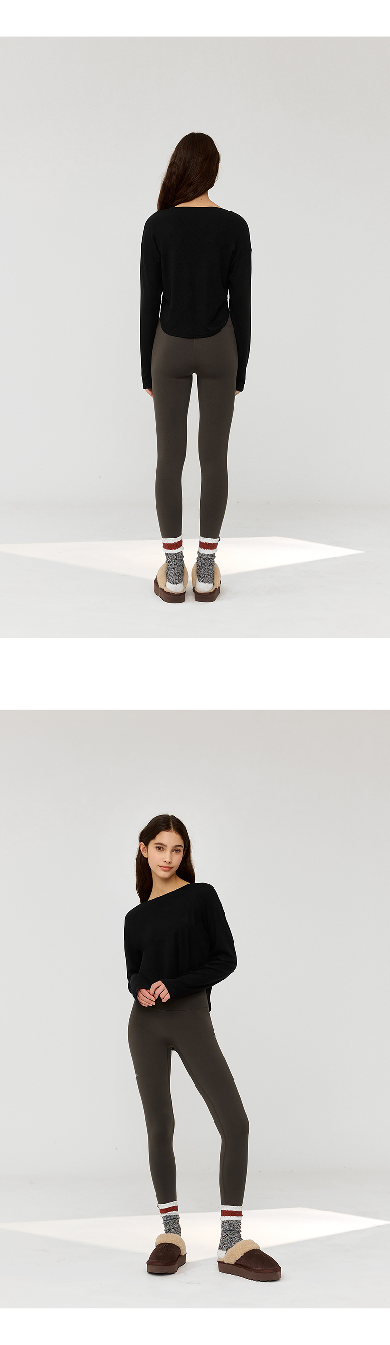 Model Size : Height : 168cmWeight : 46kg Top : S(75C)Bottom : S(26)Fitting Size : 240mm