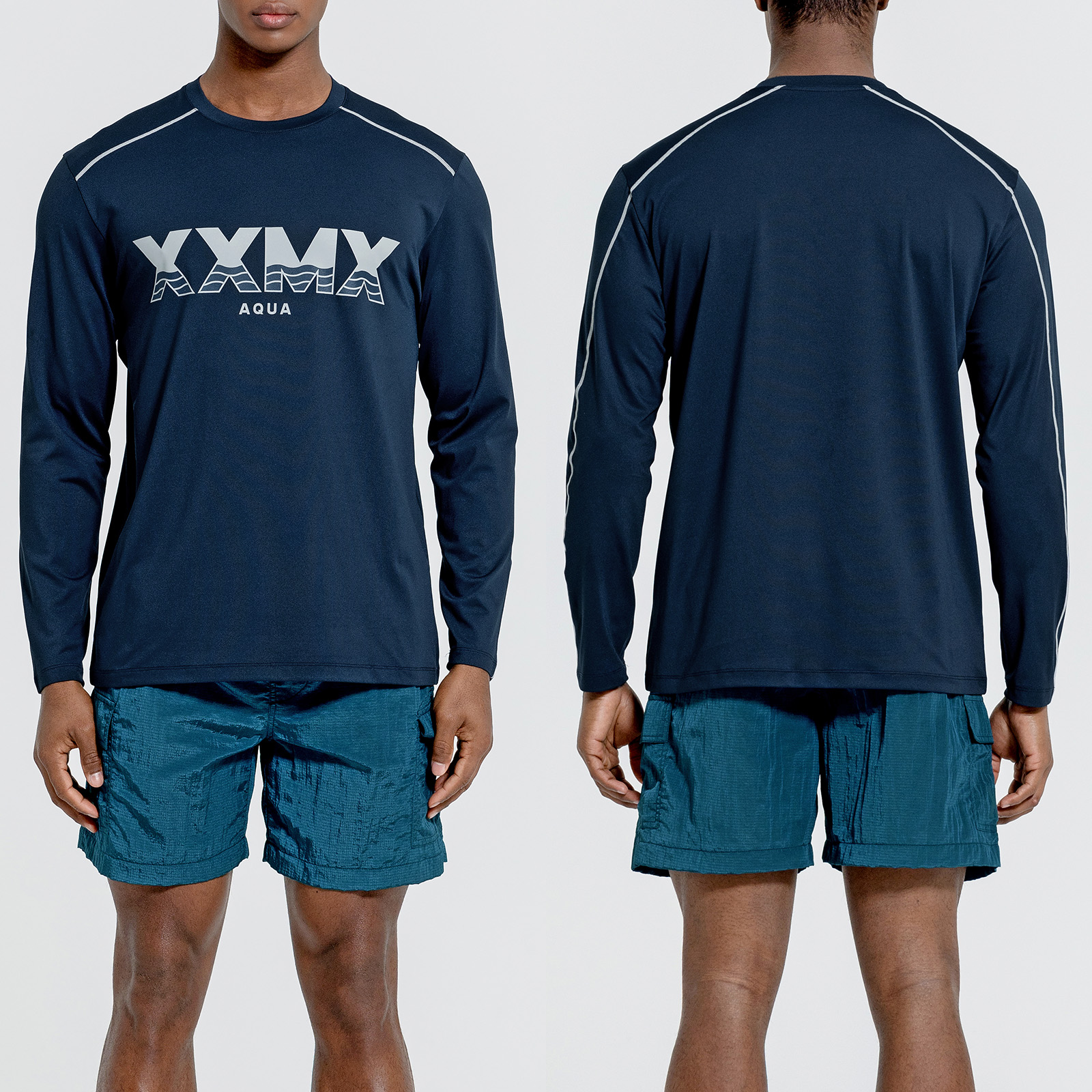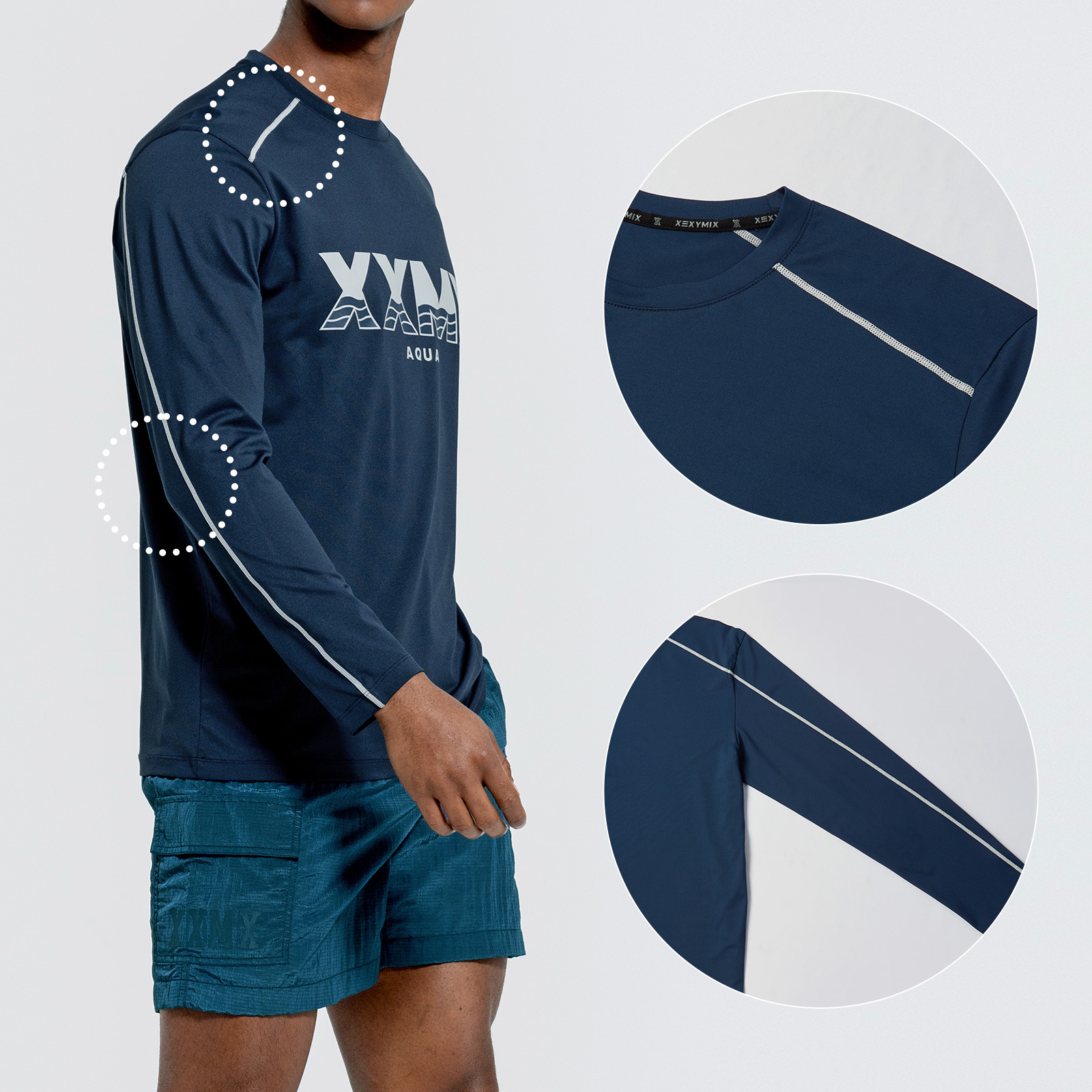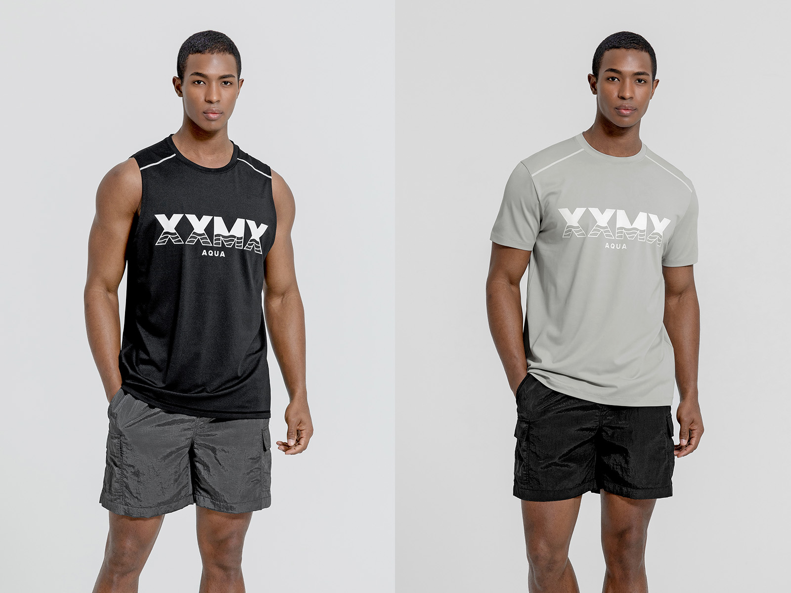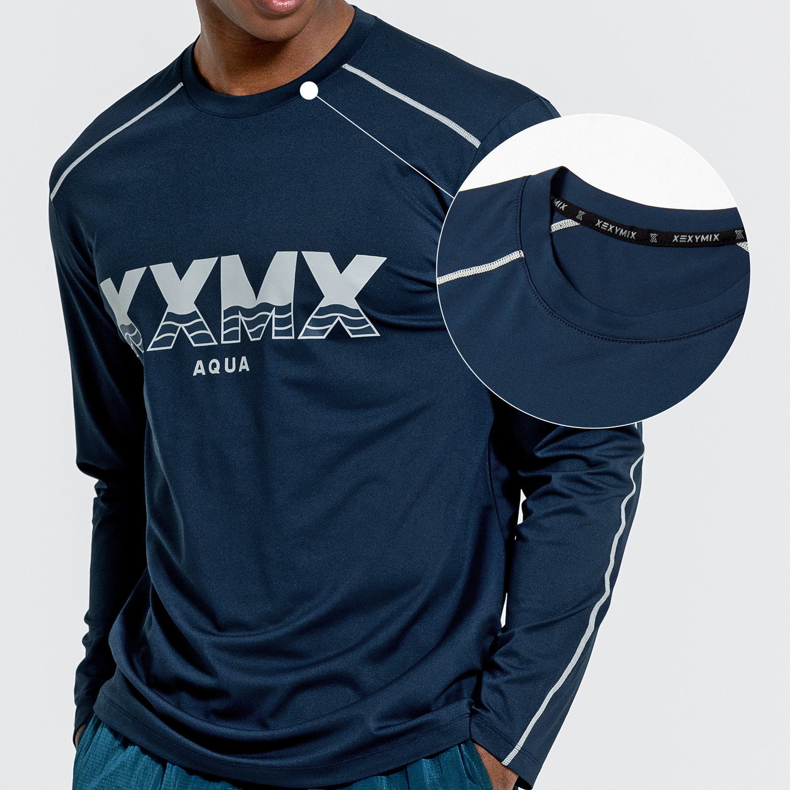 젝시믹스의 아이덴티티를 프런트 중앙에 XXMX 아쿠아 빅로고를 넣어 BP 커버는 물론, 브랜드의 아이덴티티를 시원하고 경쾌하게 보여줘요. FABRIC INFO