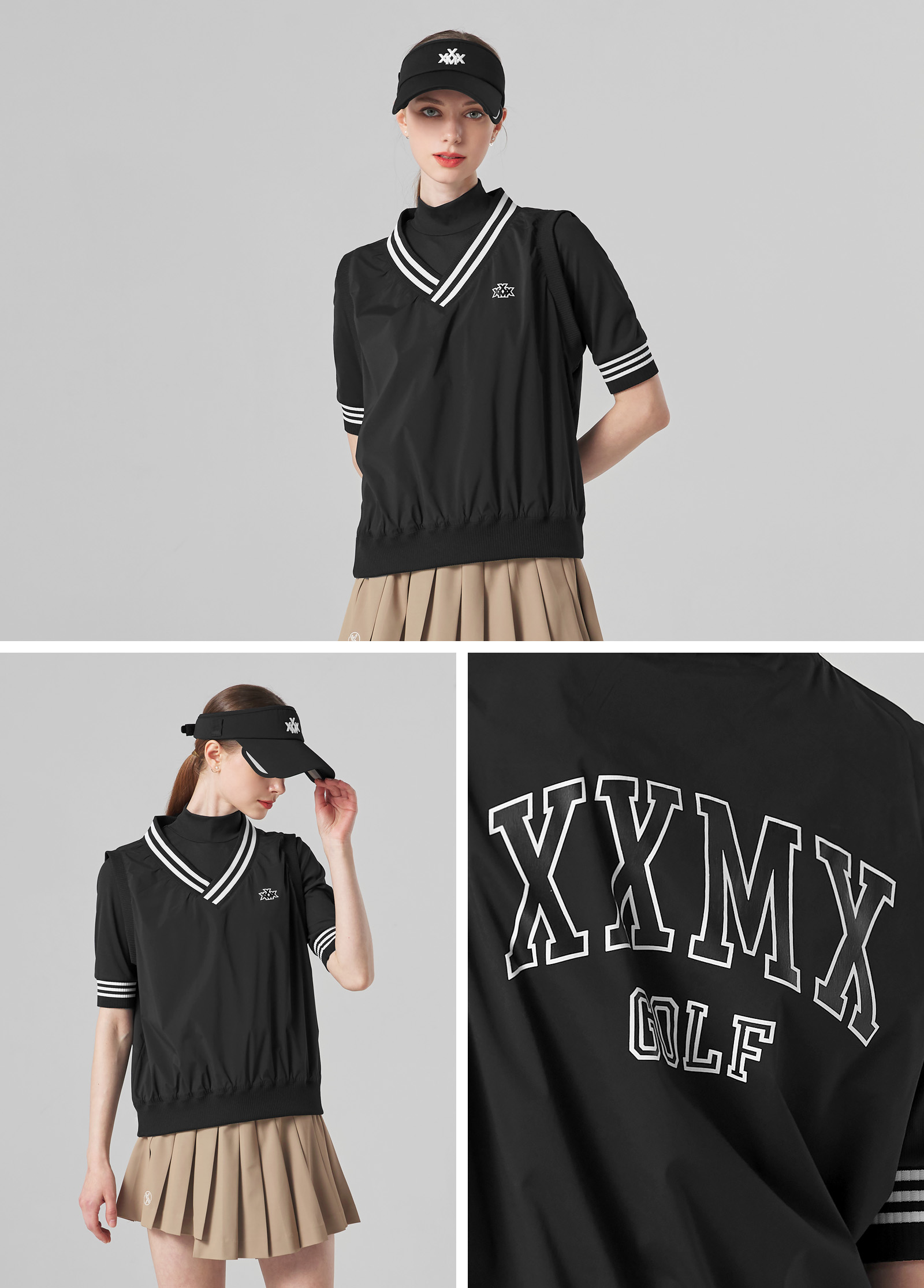 나만의 캐주얼한 넥라인에 화이트 컬러로 스트라이프 배색 포인트를 주어 캐주얼하고 스포티한 무드를 더했어요.