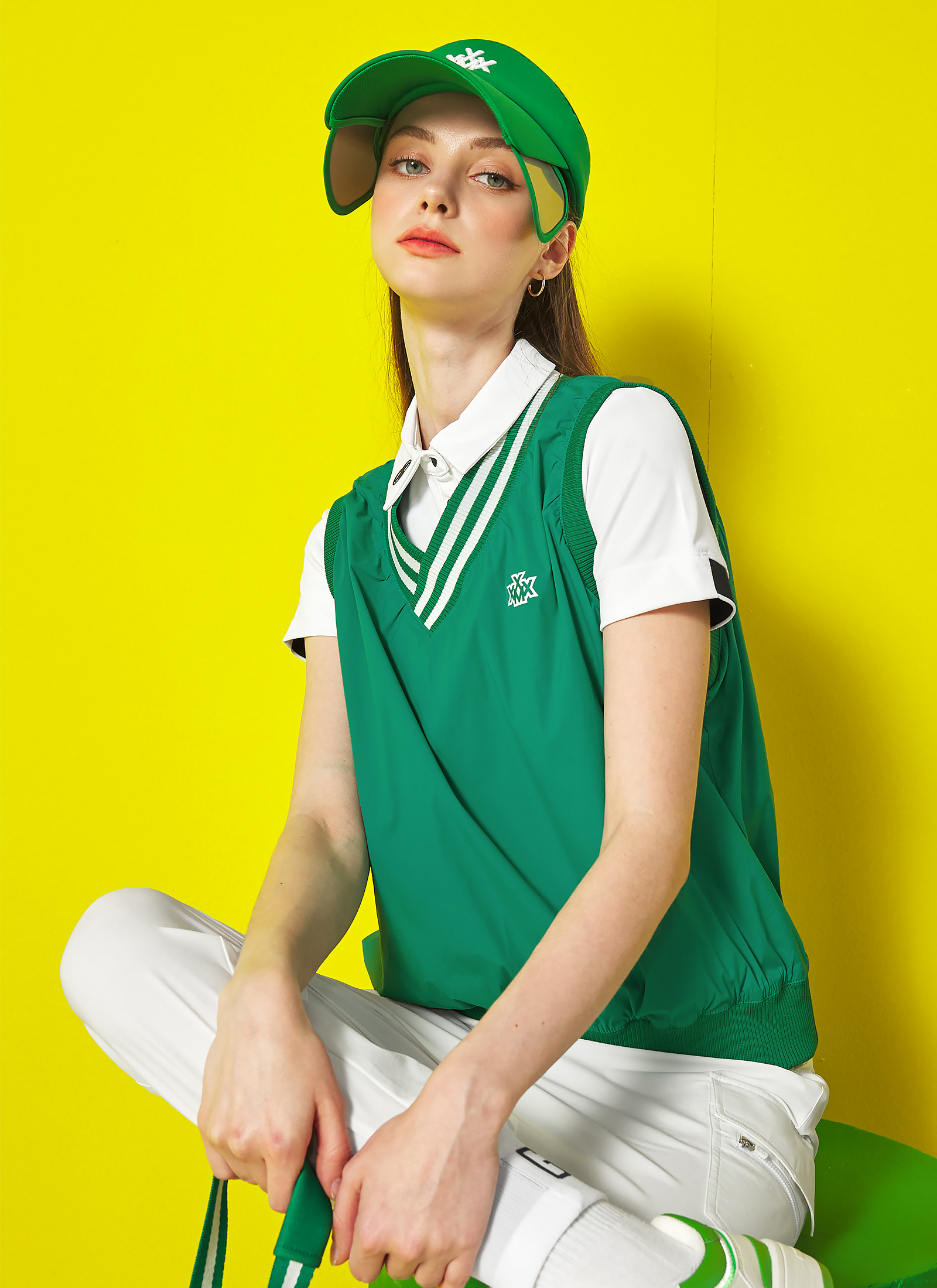 필드에서뿐만 아니라 일상에서도 브이넥 우븐 베스트