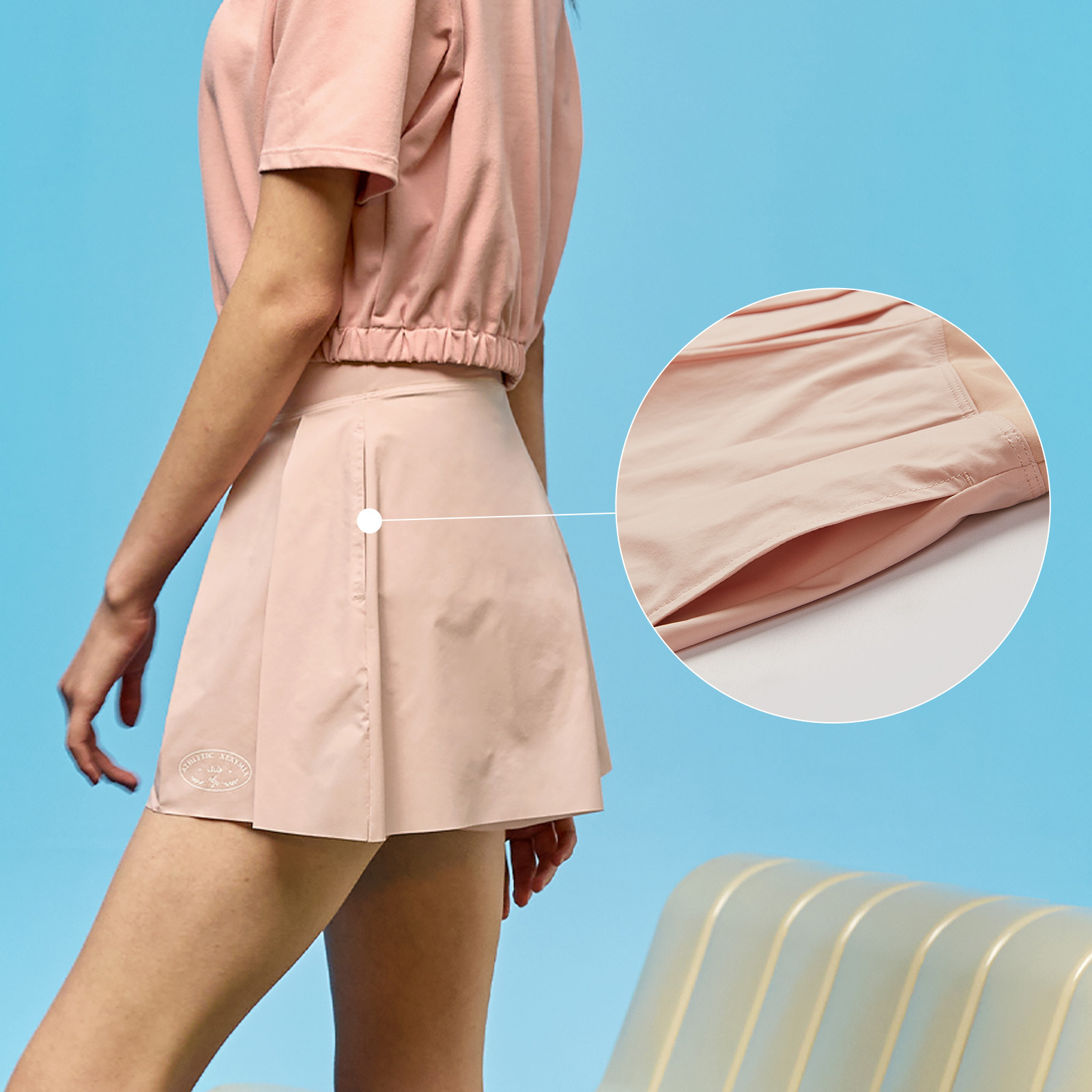 앞면에 플리츠를 잡아 스커트처럼