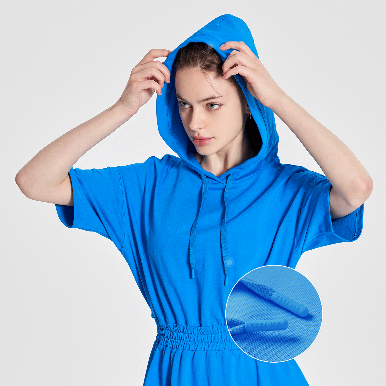 후드 입구의 스트링을 젝시믹스 러버 팁으로