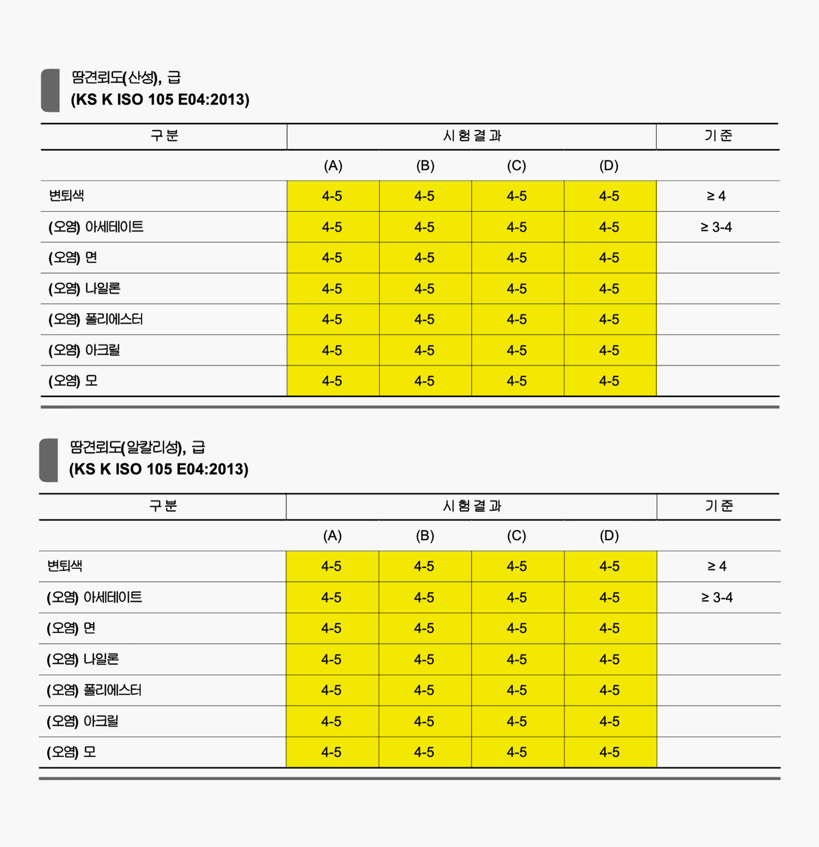 인체에서 배출되는 땀에 의한 변색과