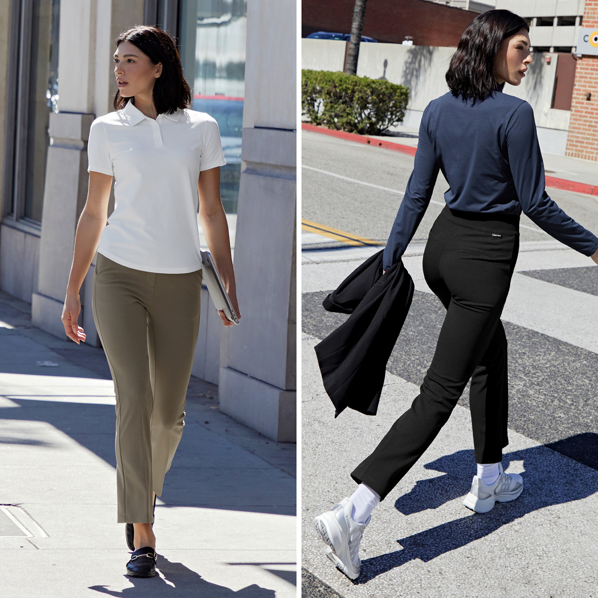 02 "슬랙스인데 레깅스처럼 편안해요!" 신축성이 뛰어난 폴리우레탄 원사를 혼방하여 다양한 움직임을 편안하게 서포트해 주며, 바디 라인을 쫀쫀하게 잡아주는 착용감으로 자연스러운 라인 보정 효과까지 선사해 줘요.