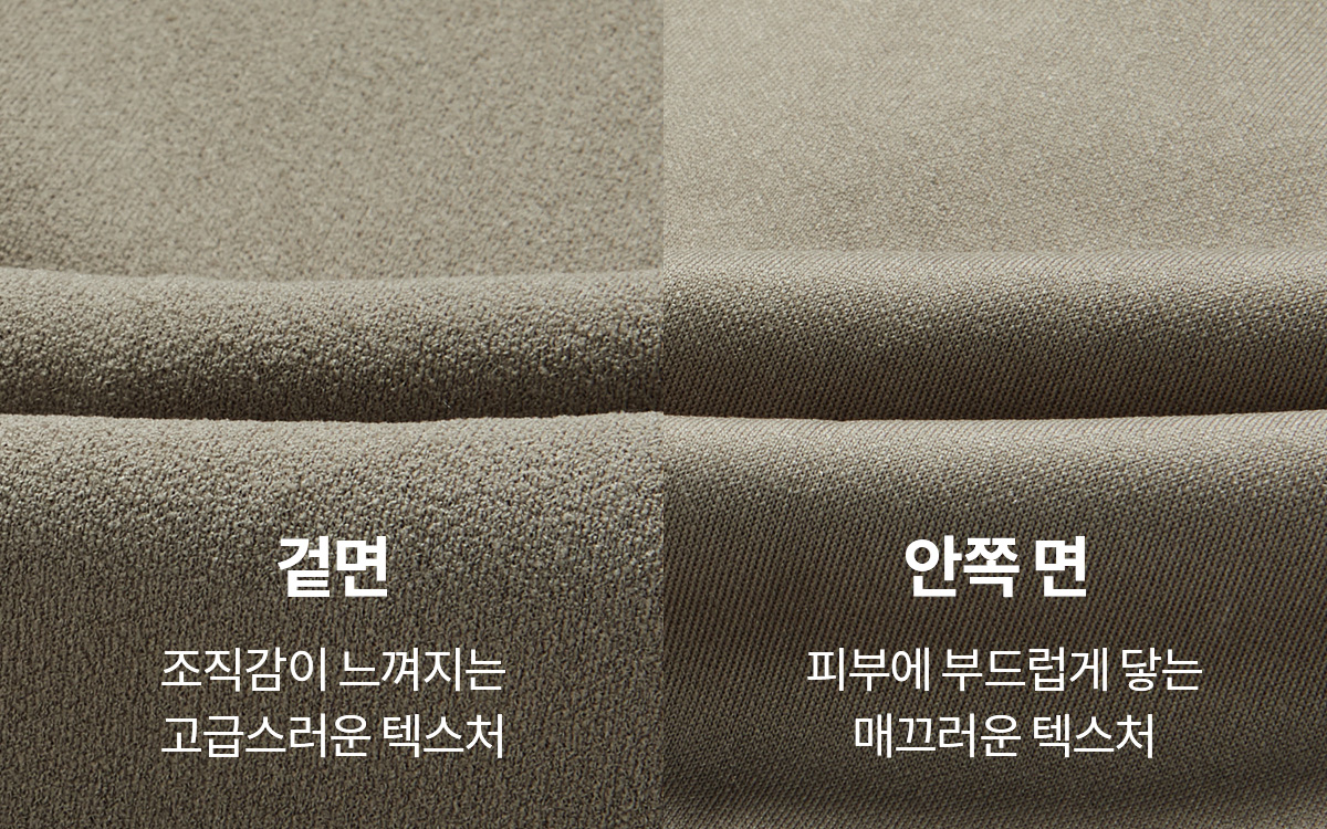 겉면은 포멀한 슬랙스처럼 조직감이 있는 표면 텍스처가 돋보여요.