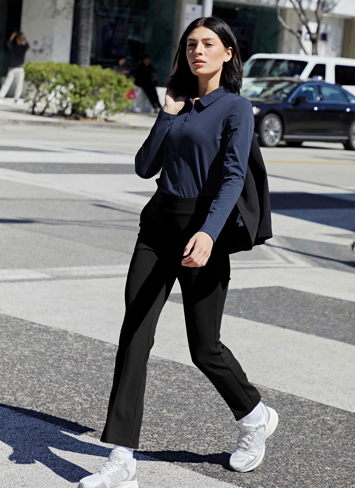 03 "출근도, 친구와의 약속도 하나로 해결!" 허벅지는 슬림하게 잡아주고 무릎부터 퍼지는 세미 부츠컷 라인으로, 종아리 라인 부각 없이 날씬해 보이면서 세련된 실루엣을 연출해 줘요.