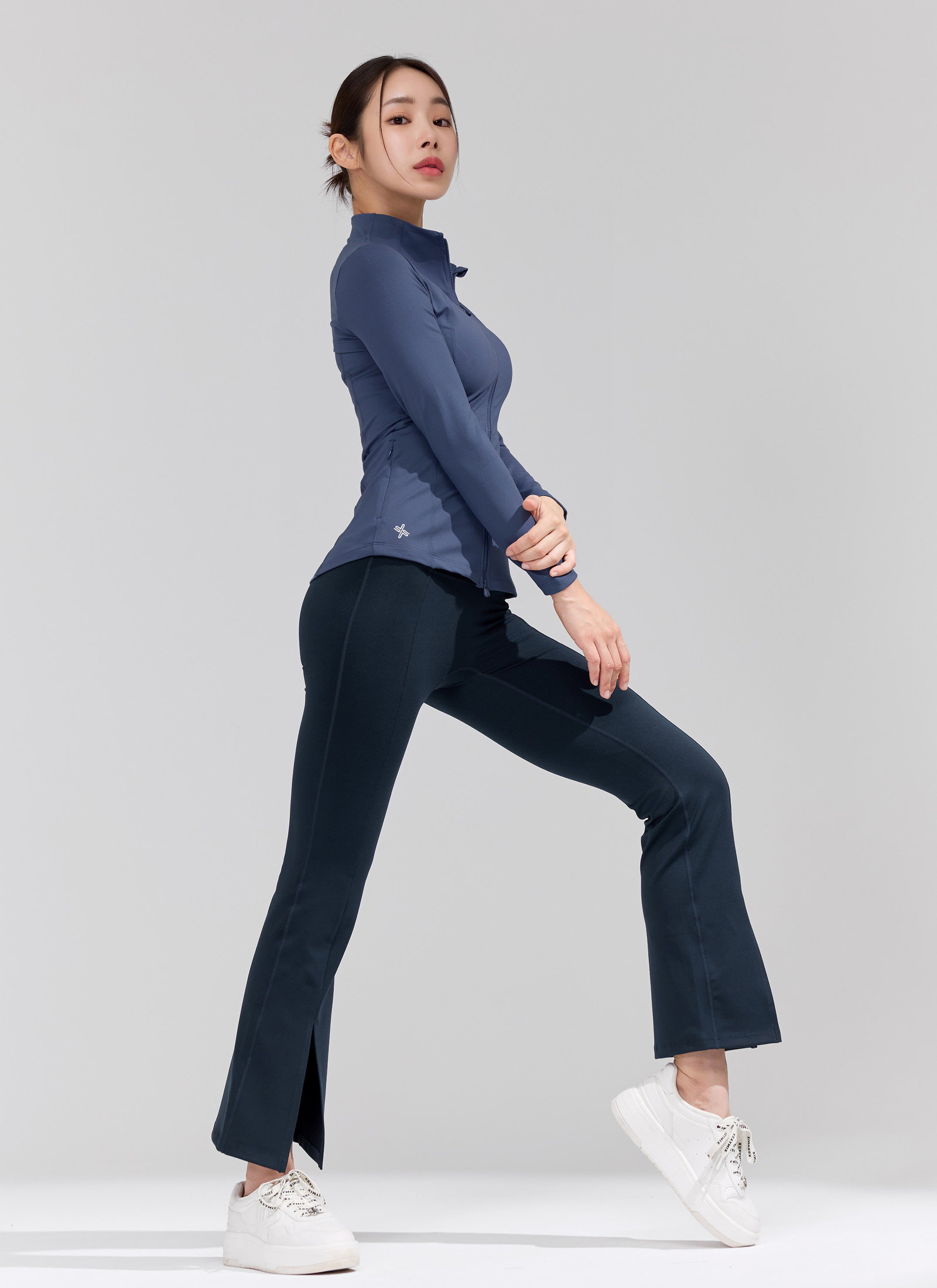 허벅지는 슬림하게 잡아주고 무릎부터 퍼지는 부츠컷 핏으로 다리가 슬림해 보이며,