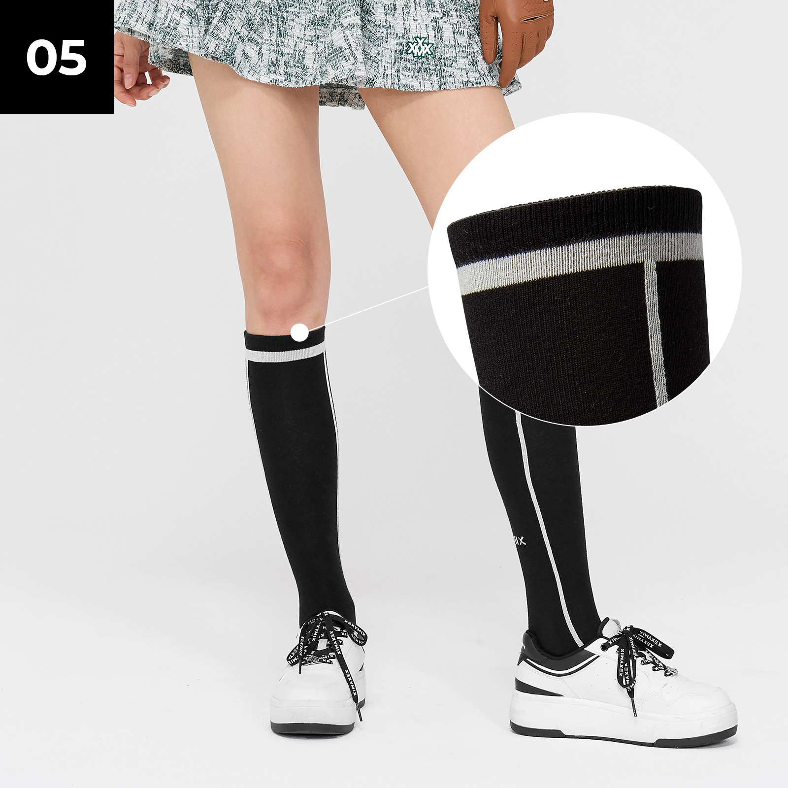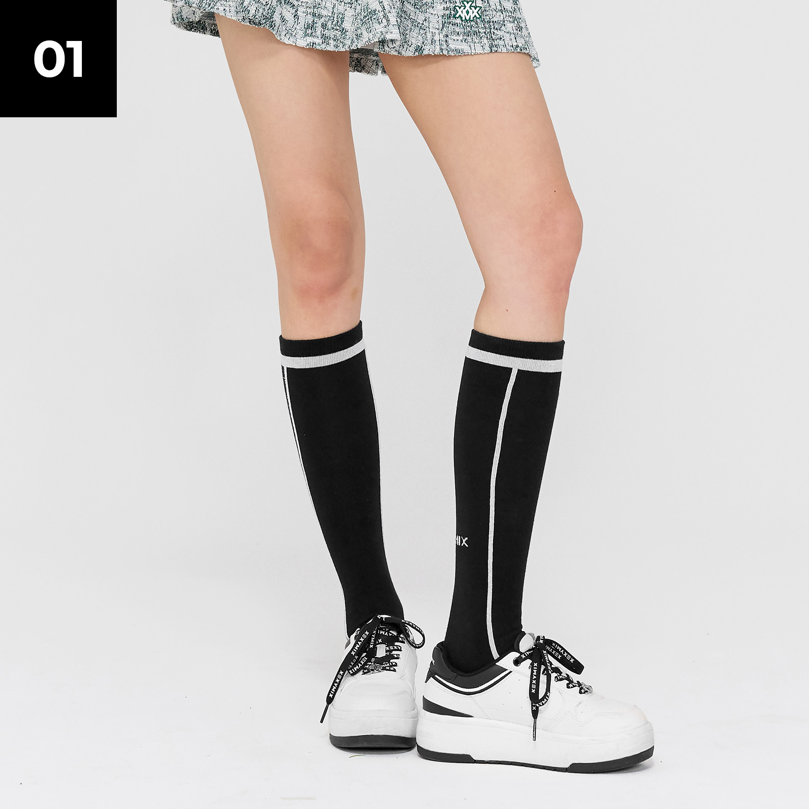 니삭스의 정석! 무릎 아래까지 올라오는 부담 없는 기장으로 다양한 룩에 매치하기 좋아요.