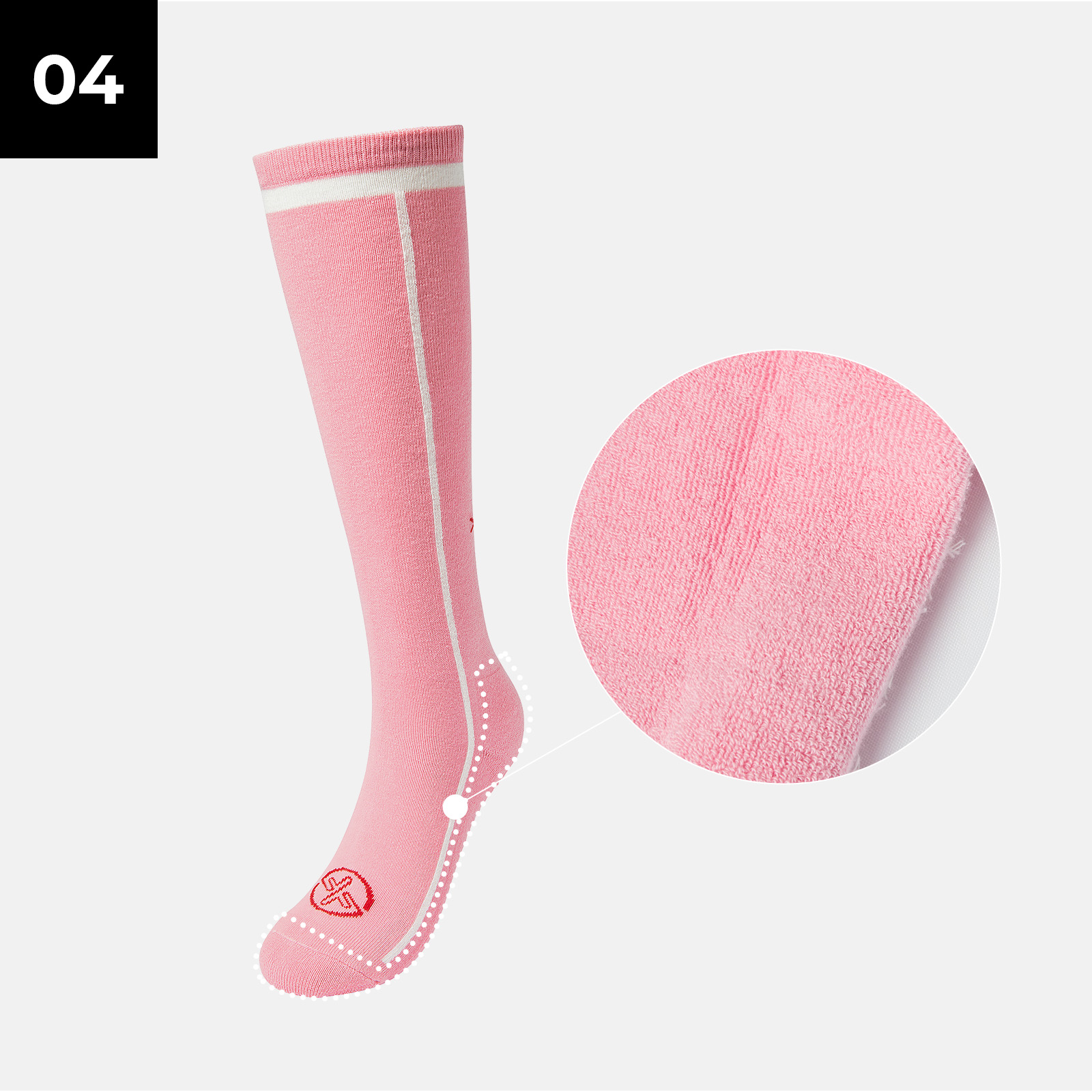 발 끝까지 완벽 서포트! 바닥면의 논슬립 디테일이 접지력을 높여 미끄러짐을 최소화해 줘요.