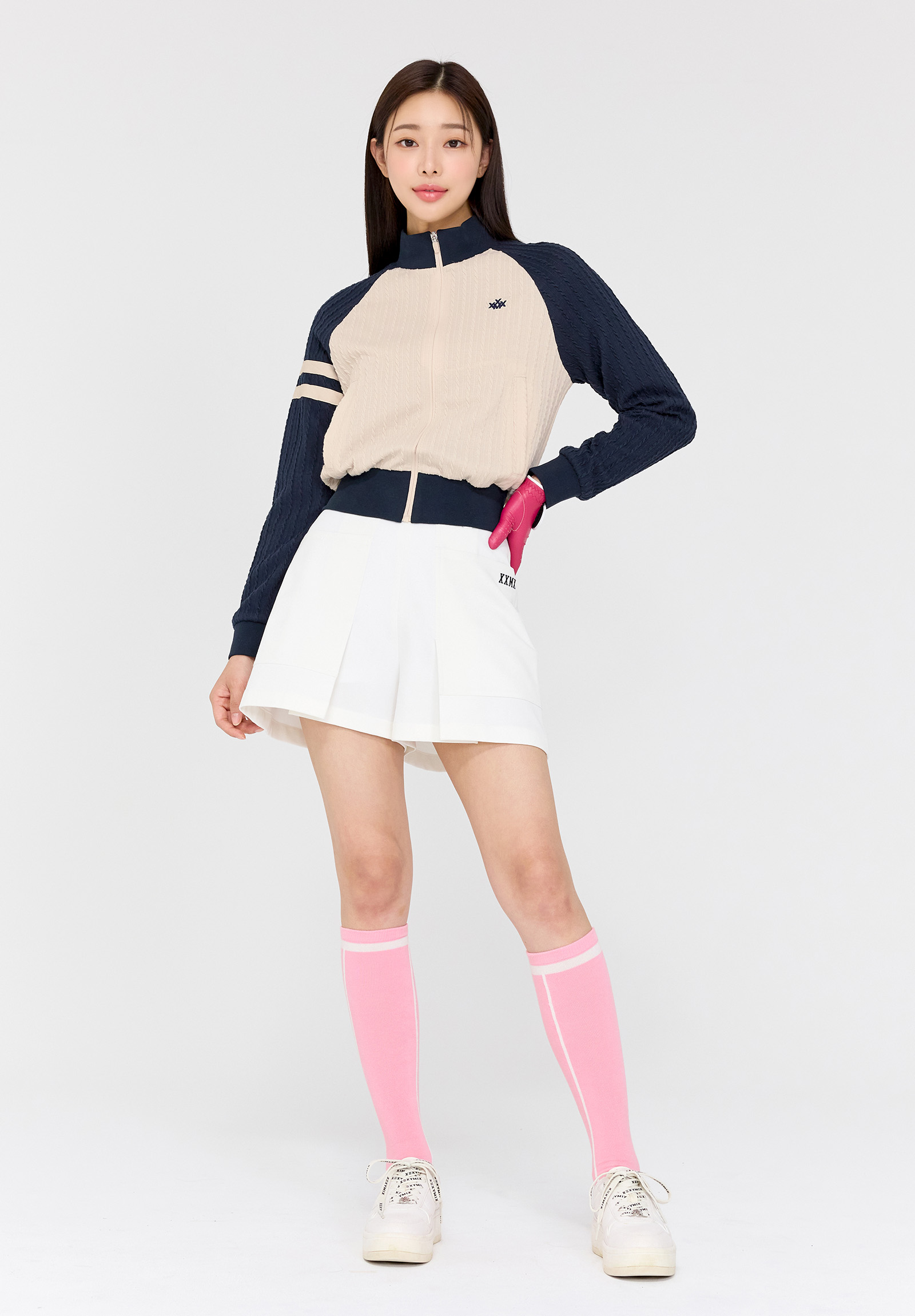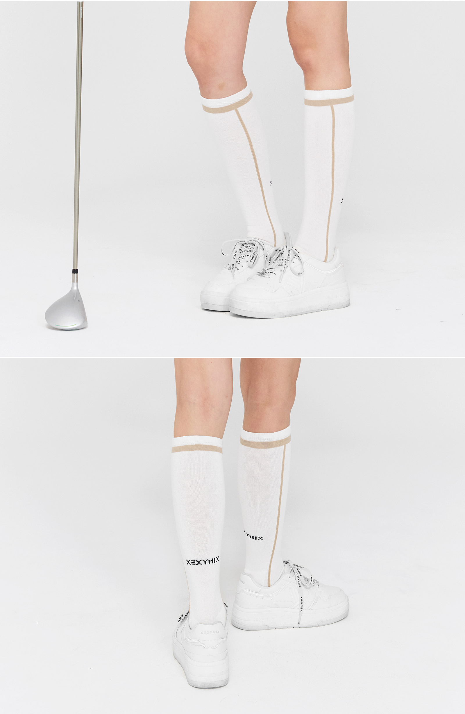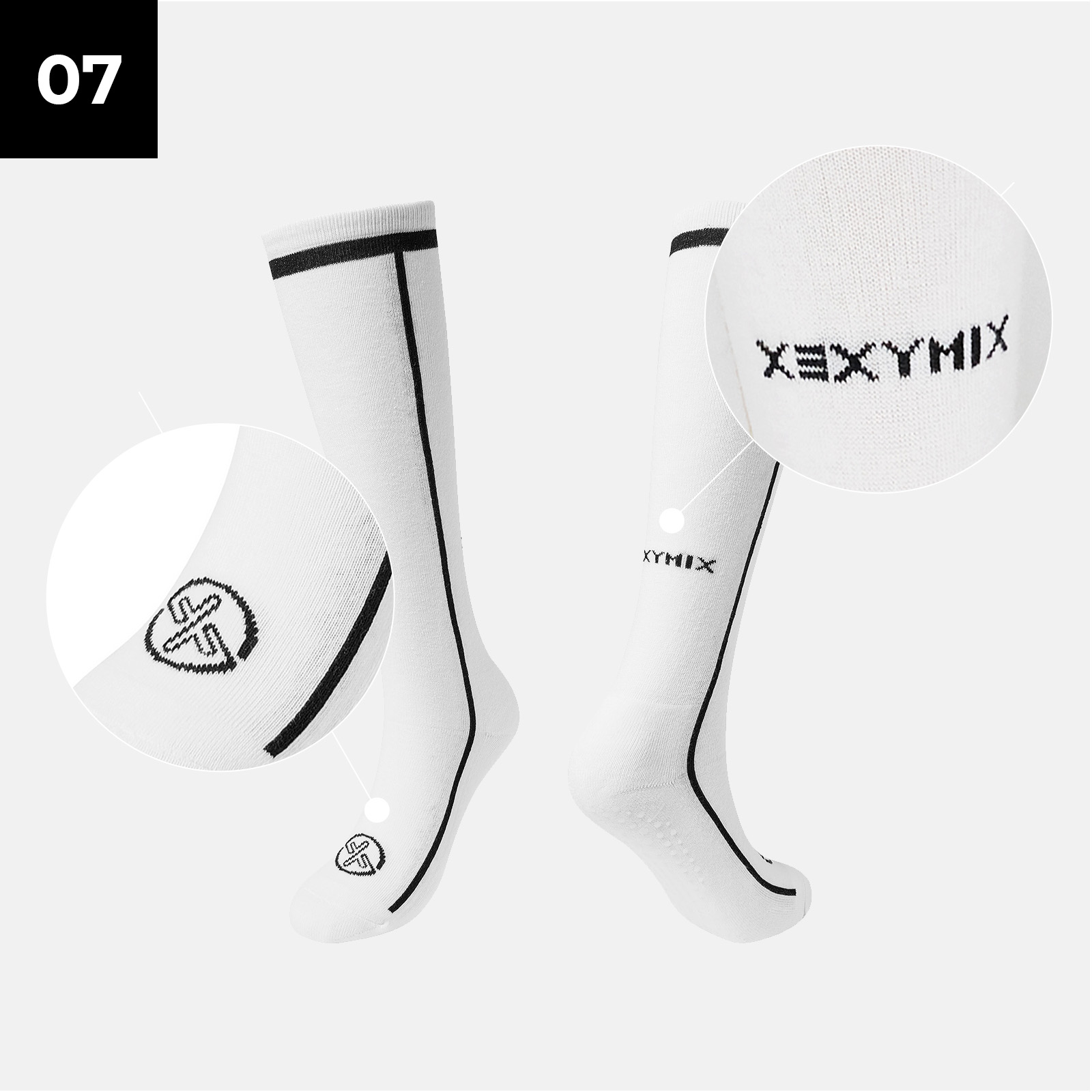 젝시믹스 아이덴티티를 종아리 후면의 젝시믹스 레터링과 발등의 심볼 로고로 포인트를 더했어요.