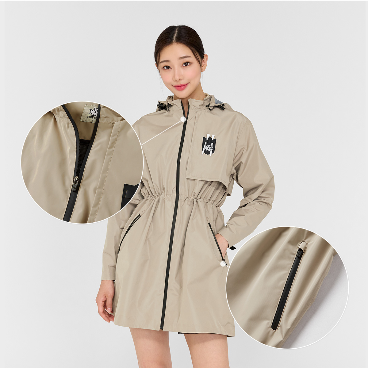 후드에 챙 디테일을 더해 우천 시