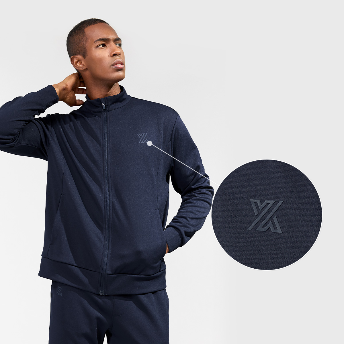 좌측 가슴에 컬러 매칭한 젝시맨즈 심볼 로고를 FABRIC INFO