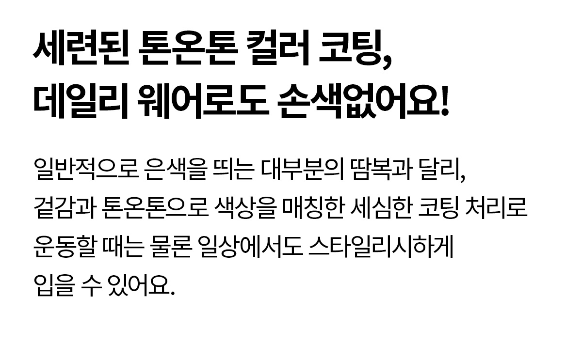 운동 중 흘리는 땀, 잦은 세탁, 다양한 마찰에도 |