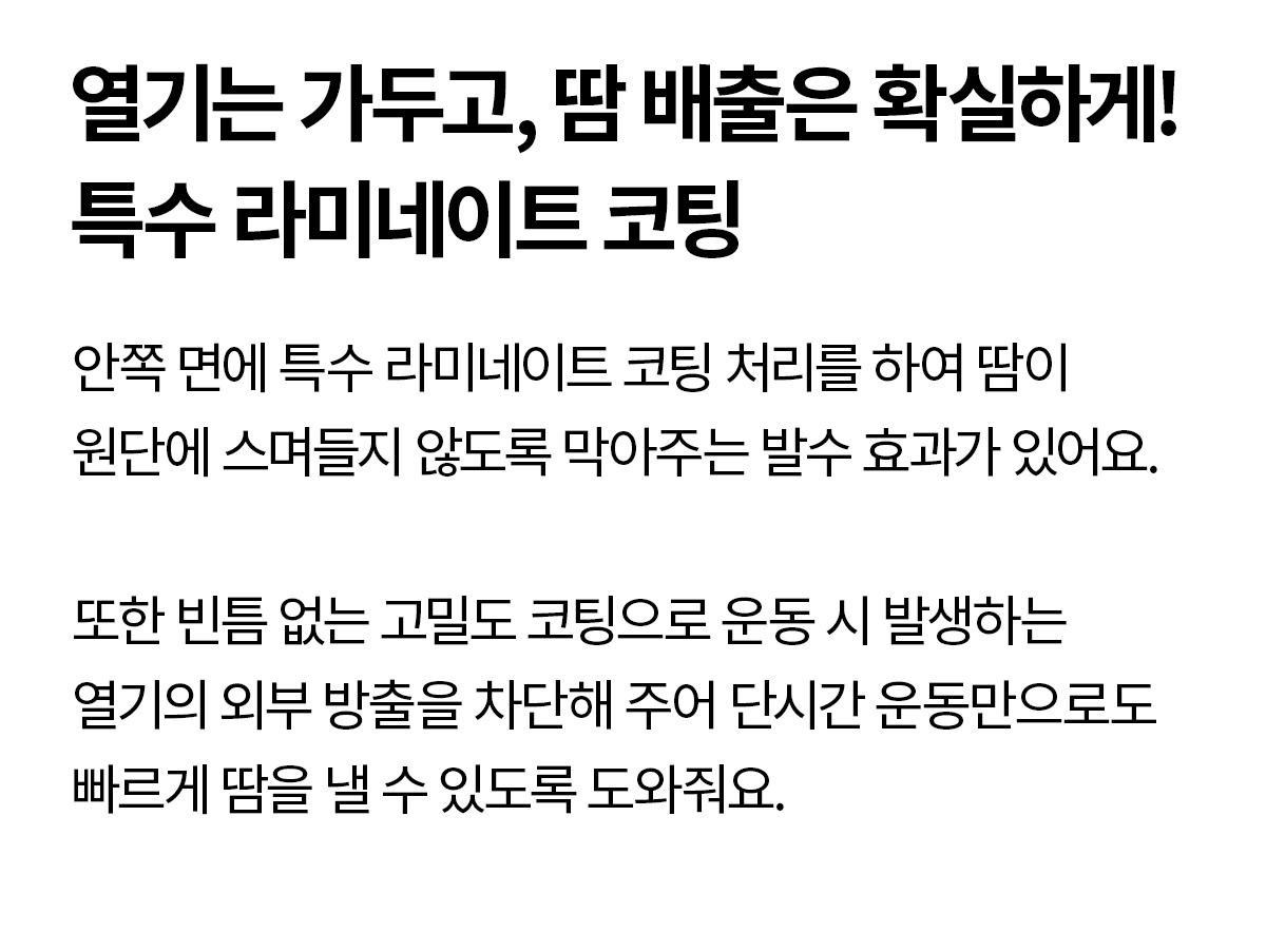 운동 중 흘리는 땀, 잦은 세탁, 다양한 마찰에도 |