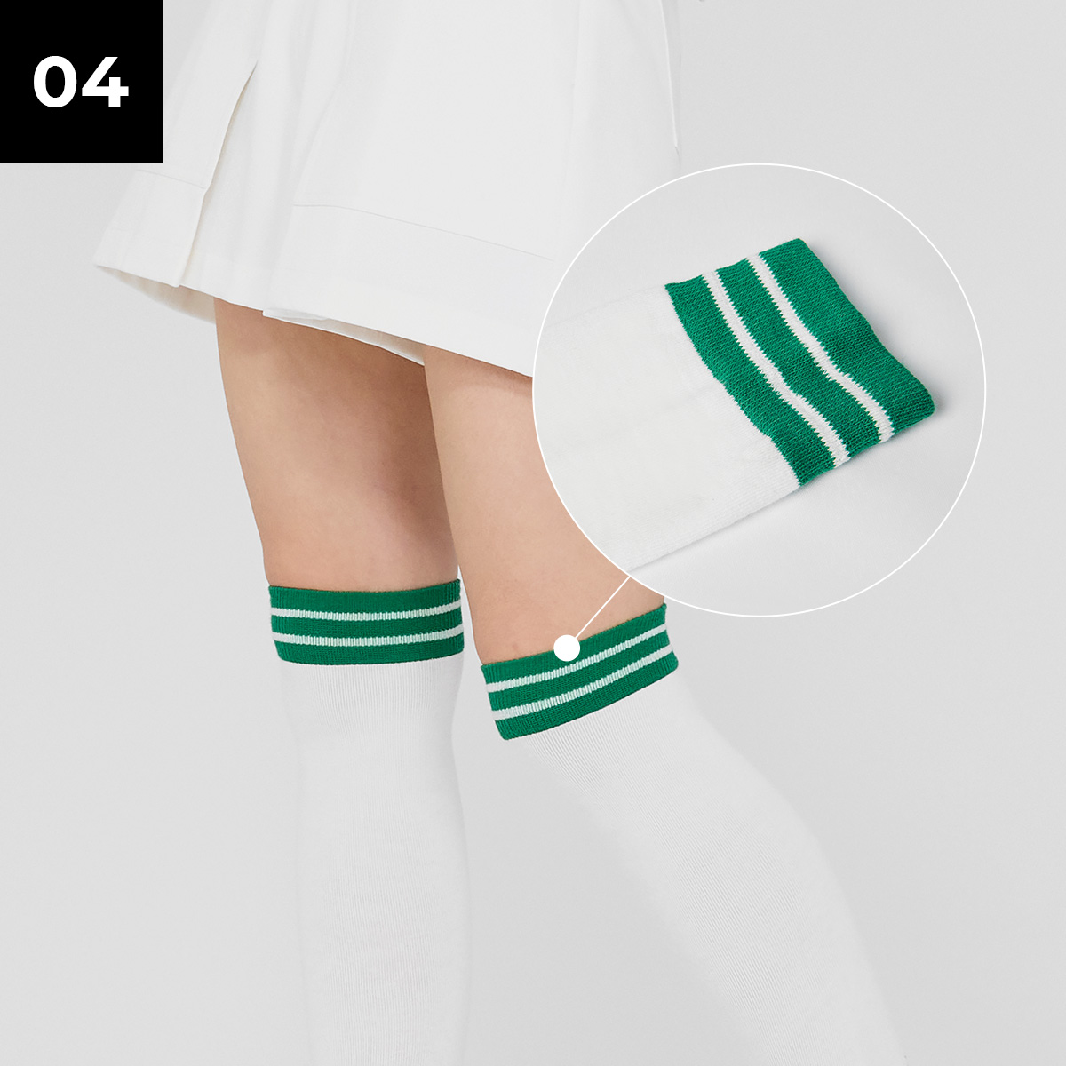 캐주얼 코디에도 활용 만점인 라인 니삭스! 그린